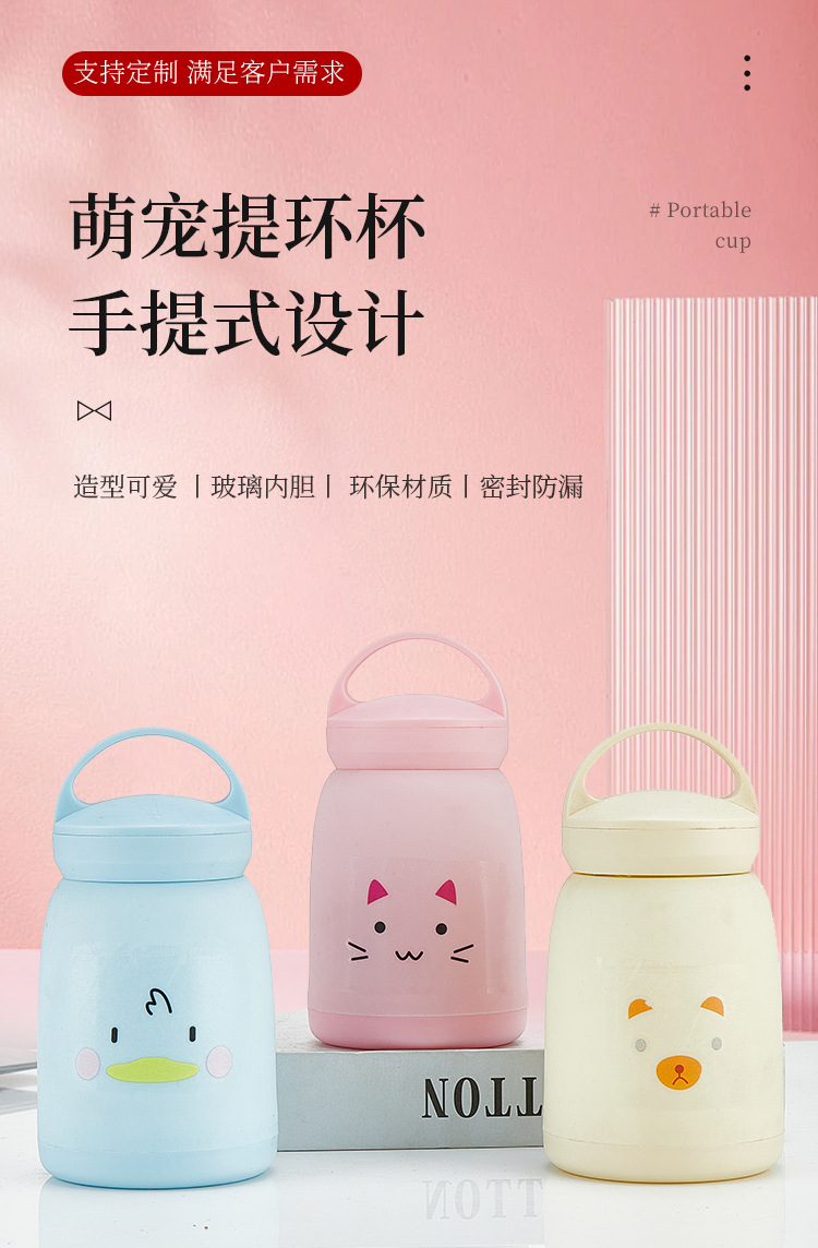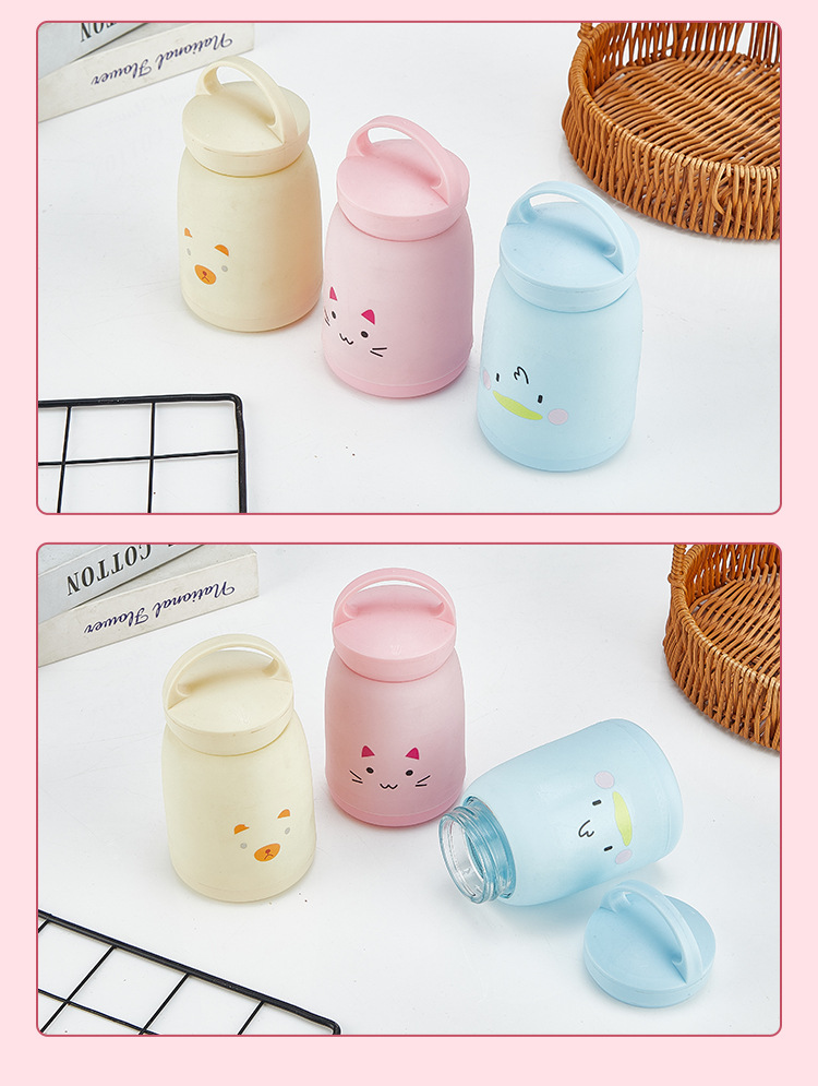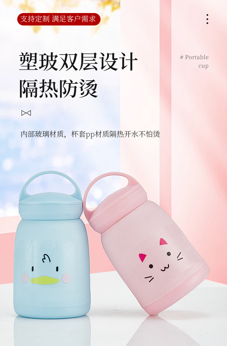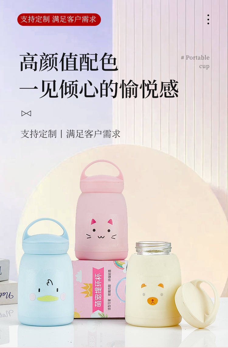 귀여운 물 컵 유리 로고 조각 패턴 뚜껑 휴대용 만화 오프닝 활동 선물 컵 광고 컵