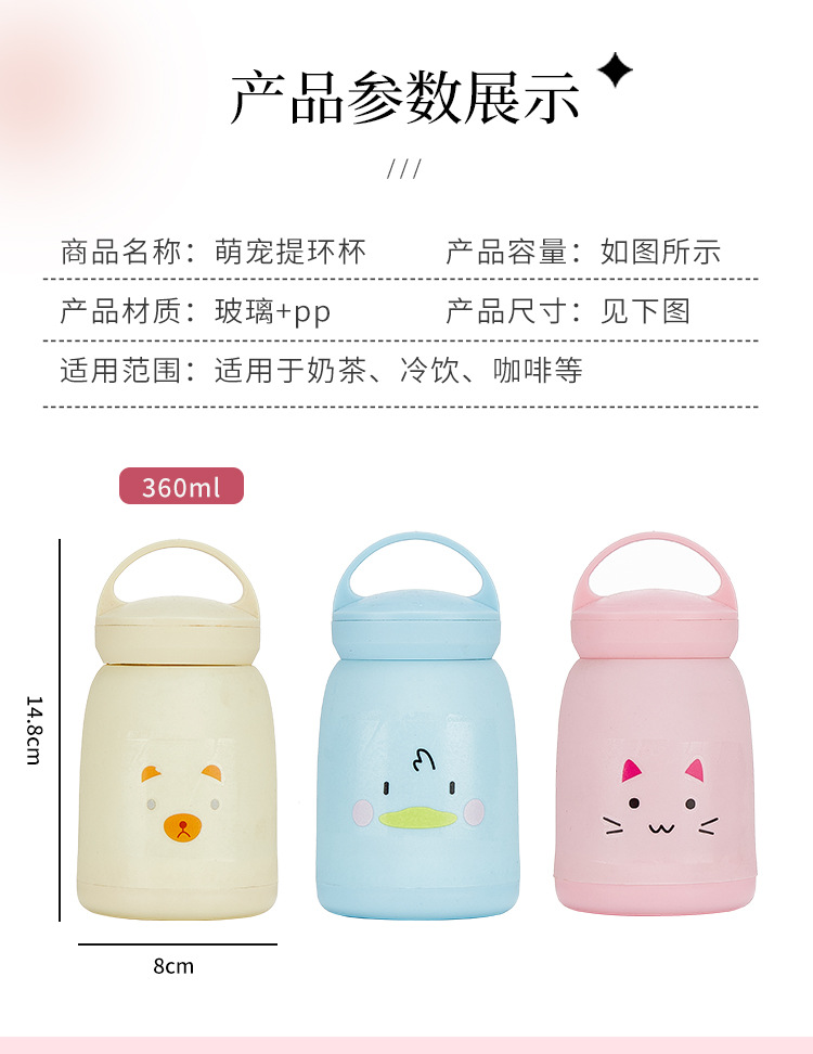 귀여운 물 컵 유리 로고 조각 패턴 뚜껑 휴대용 만화 오프닝 활동 선물 컵 광고 컵스토어 가기