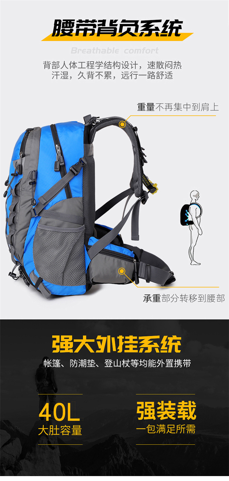 국경 간 야외 하이킹 등산 가방 다기능 캠핑 여행 배낭 나일론 대용량 내마모성 배낭 도매