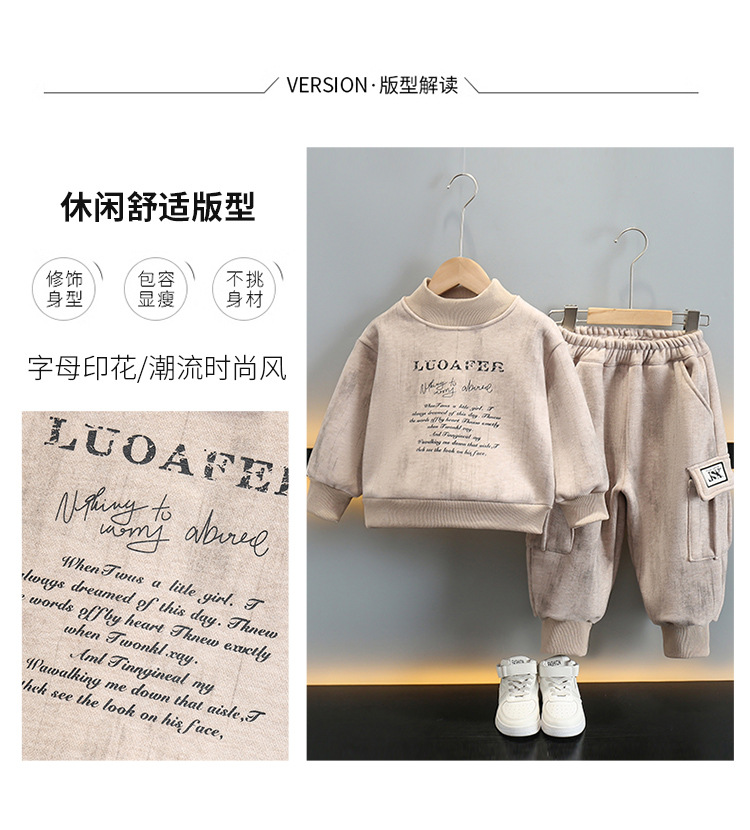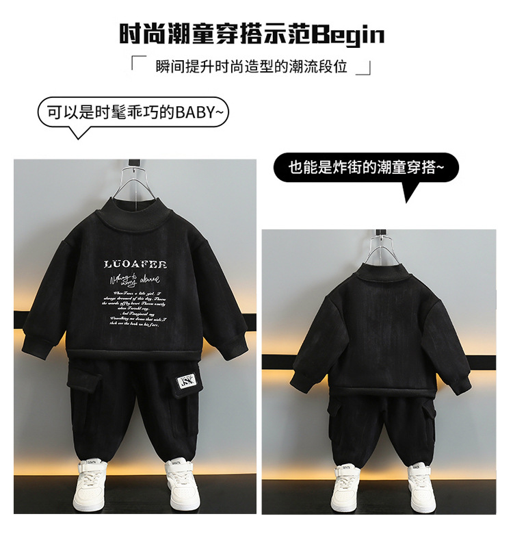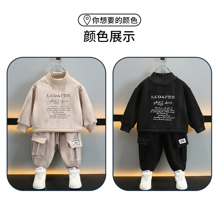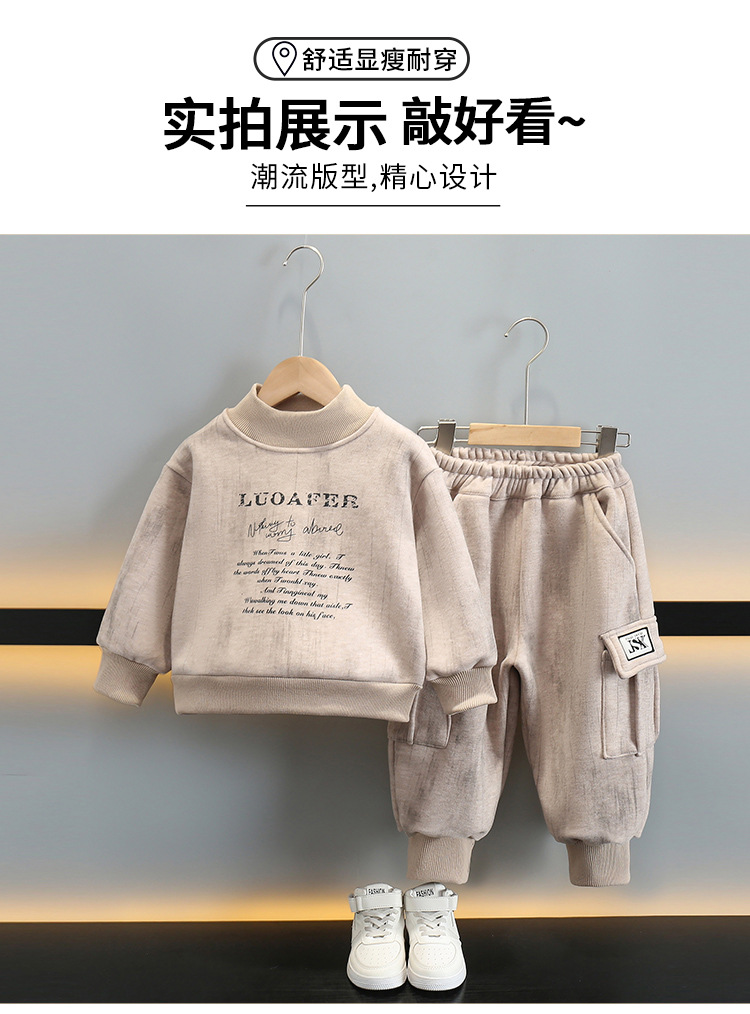 6748 소년 정장 가을 의류 2025 새로운 인터넷 연예인 어린이 스타일 벨벳 스웨트 가을, 겨울 올인원 벨벳 투피스 세트스토어 가기