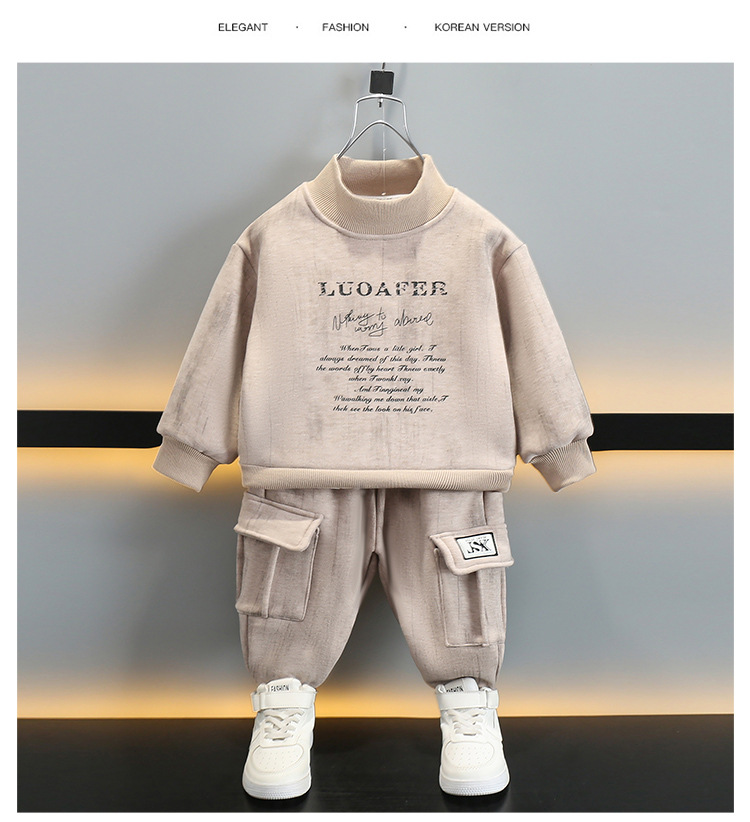 6748 소년 정장 가을 의류 2025 새로운 인터넷 연예인 어린이 스타일 벨벳 스웨트 가을, 겨울 올인원 벨벳 투피스 세트