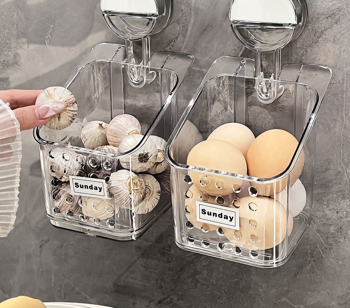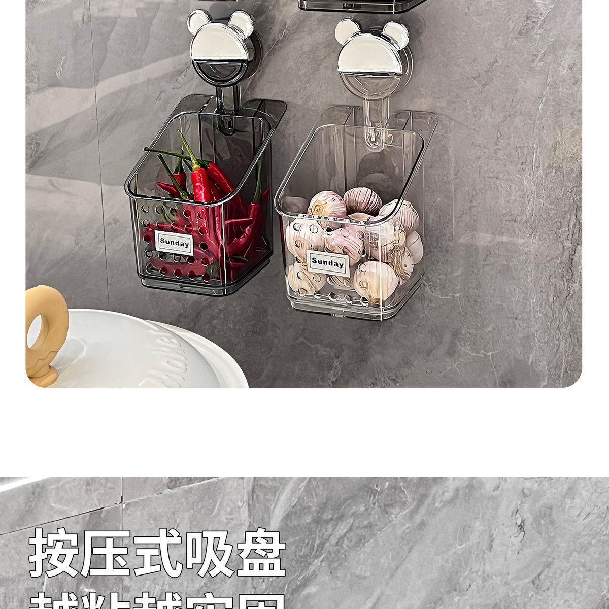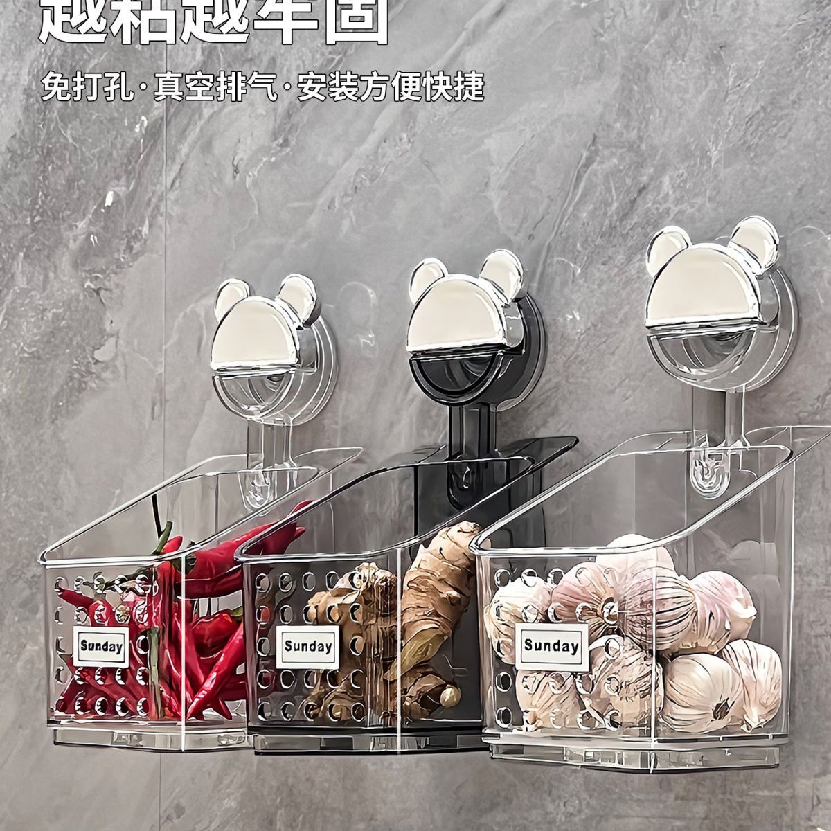 석션 컵 스캘리온, 생강 및 마늘 저장 상자 주방 보관 바구니 벽에 매달린 펀치없는 저장 랙 생강 및 마늘 저장 랙
