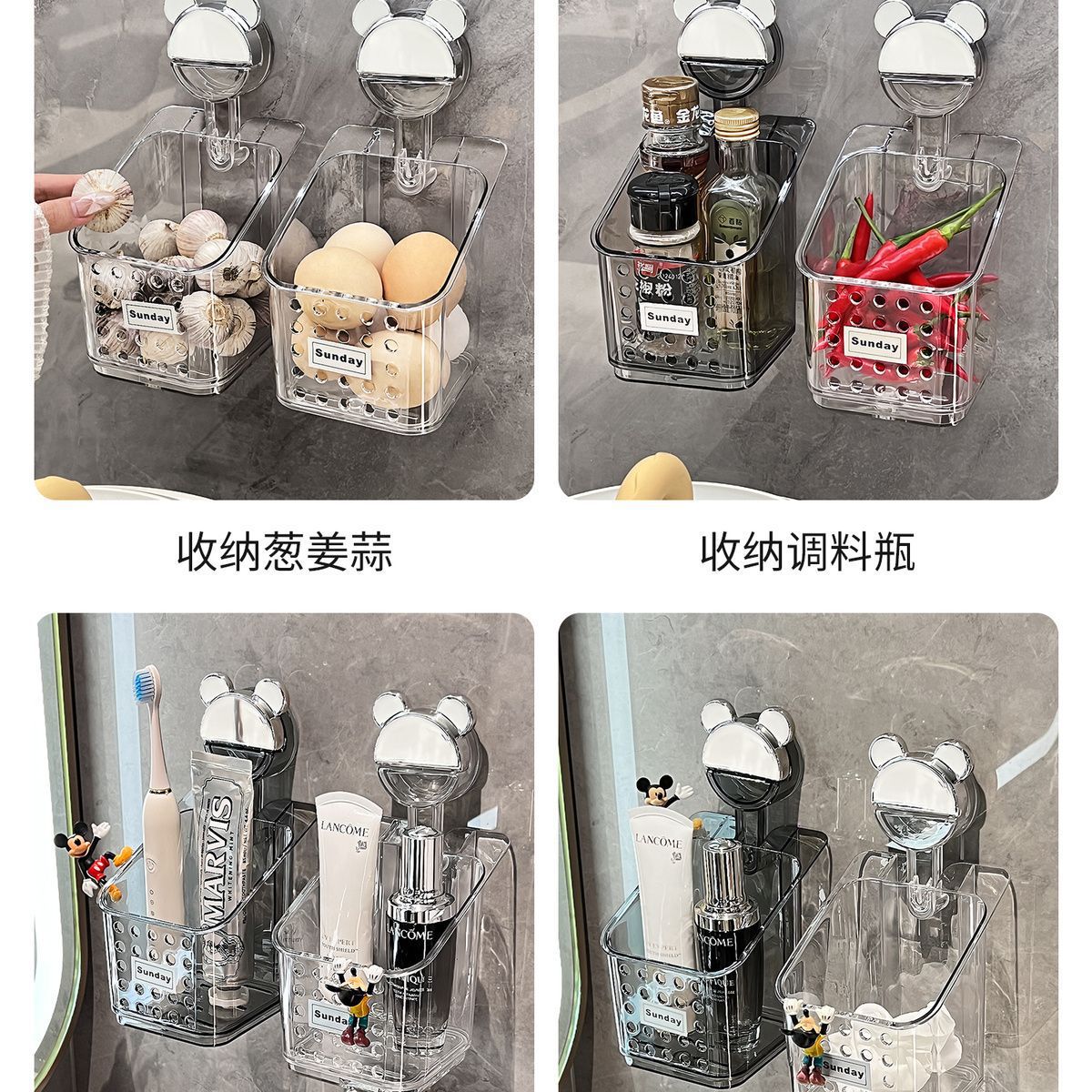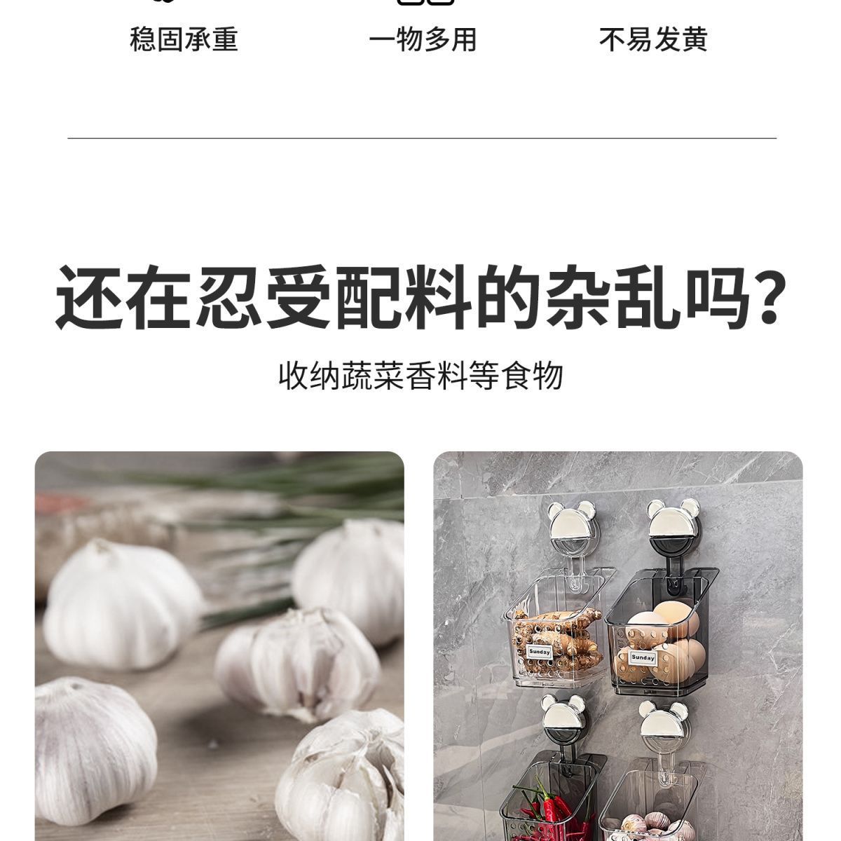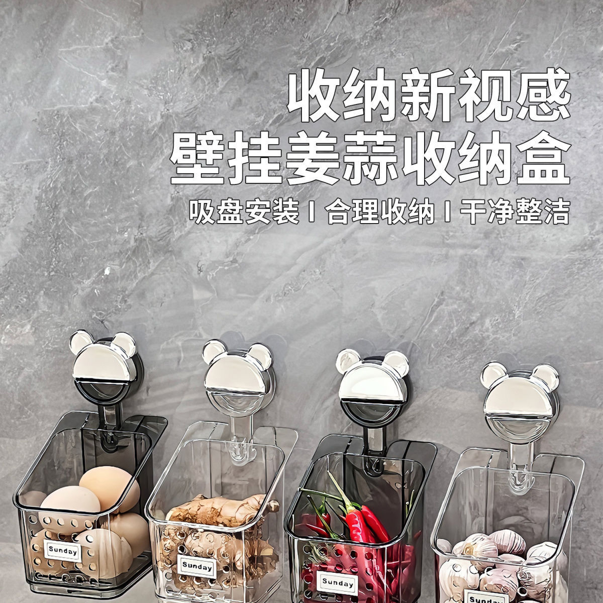 석션 컵 스캘리온, 생강 및 마늘 저장 상자 주방 보관 바구니 벽에 매달린 펀치없는 저장 랙 생강 및 마늘 저장 랙
