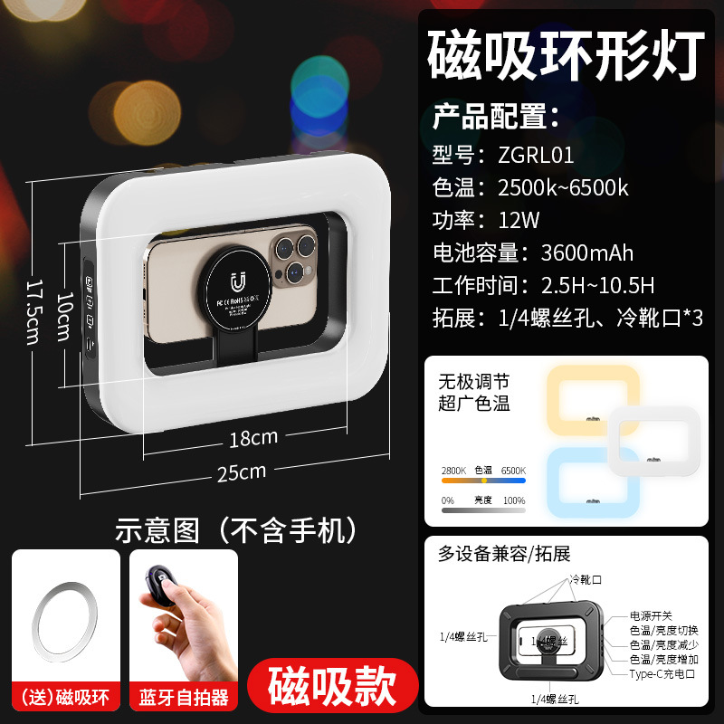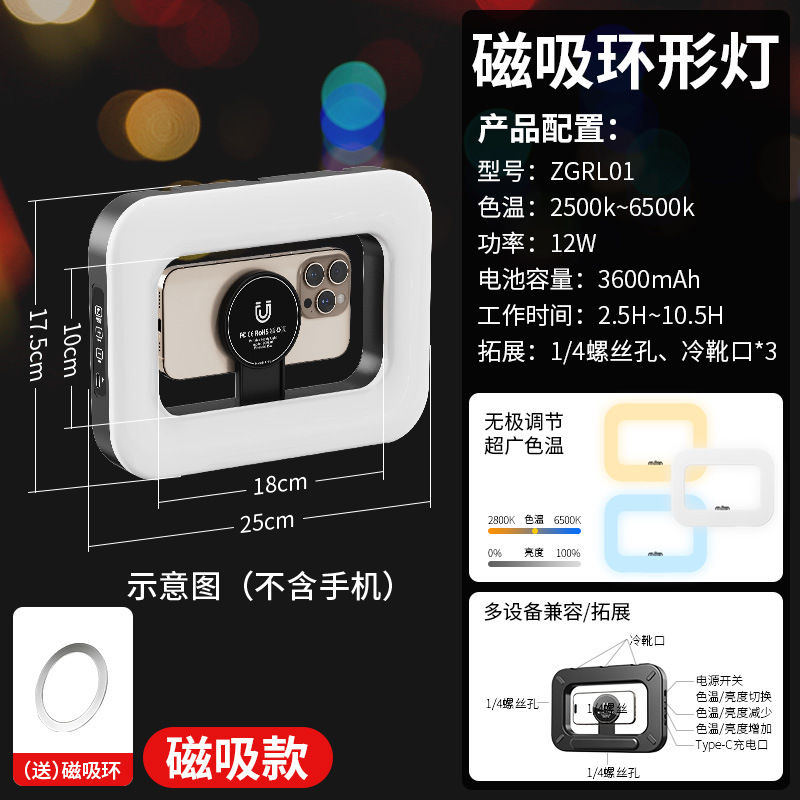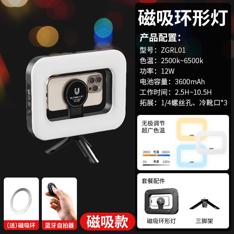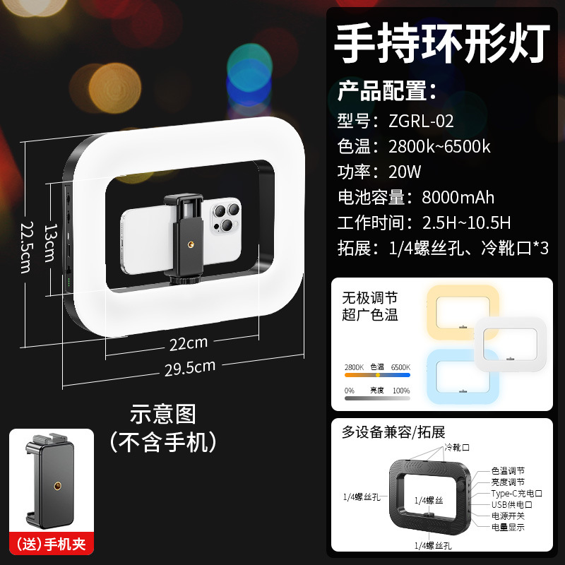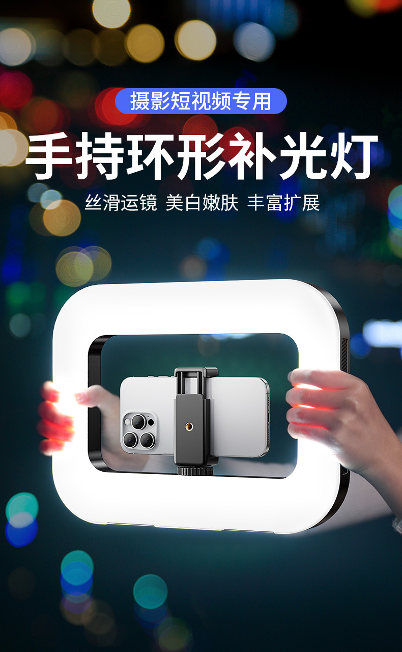 새로운 핸드 헬드 링 채우기 빛 휴대용 휴대 전화 라이브 전용 충전 사진 램프 데스크탑 토끼 케이지 셀프 타이머 램프
