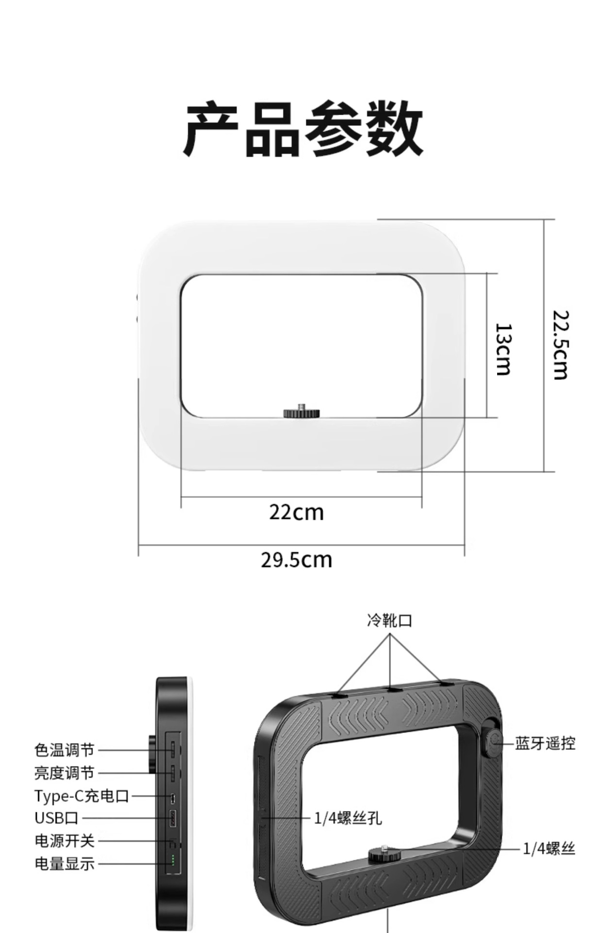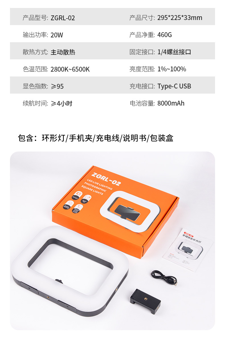 • ZGRL02 휴대용 사각 조명 + 데스크탑 삼각대