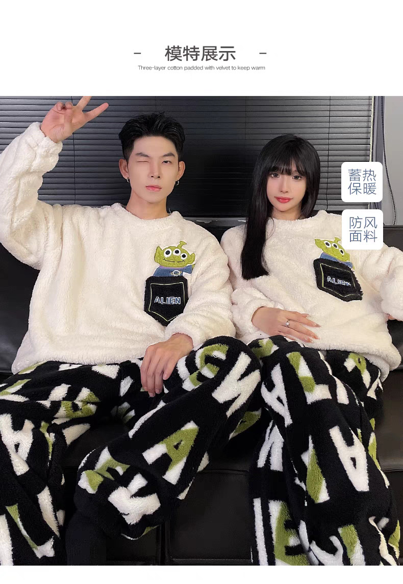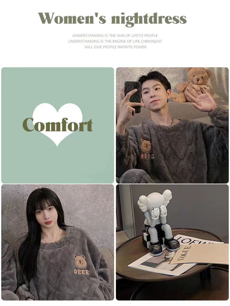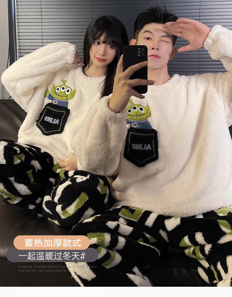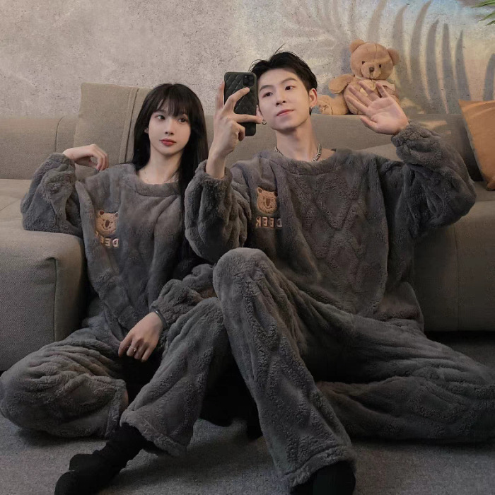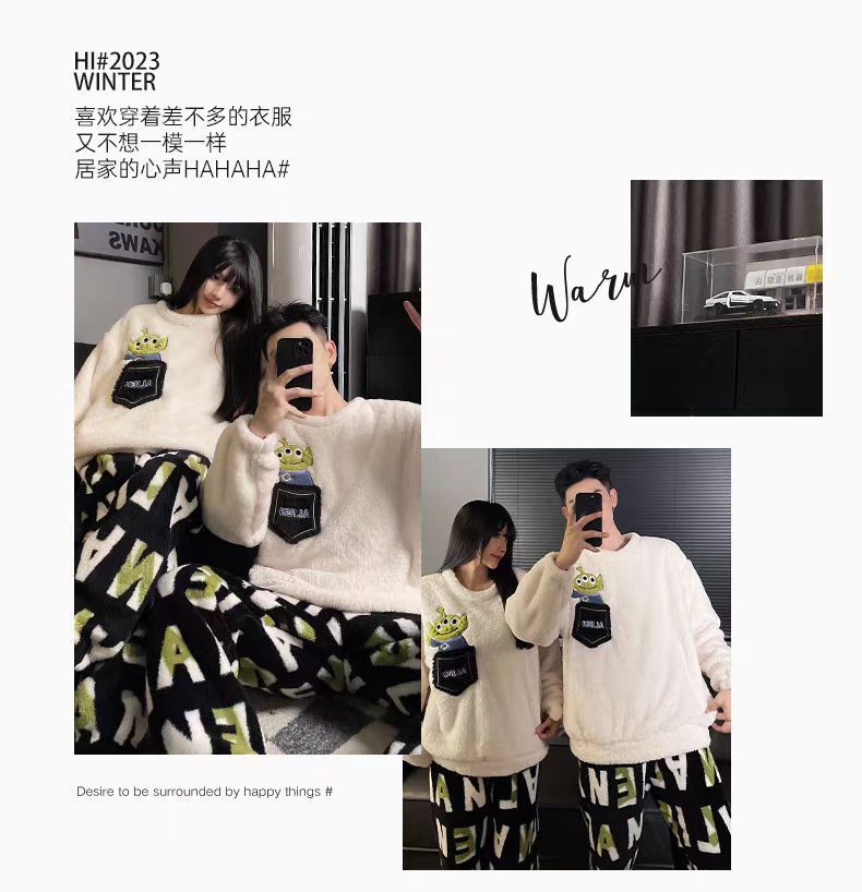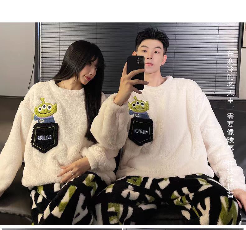 커플 잠옷 여성의 가을과 겨울 플란넬 간단한 만화 산호 양털 남자의 겨울 두꺼운 기모 홈 옷 세트스토어 가기