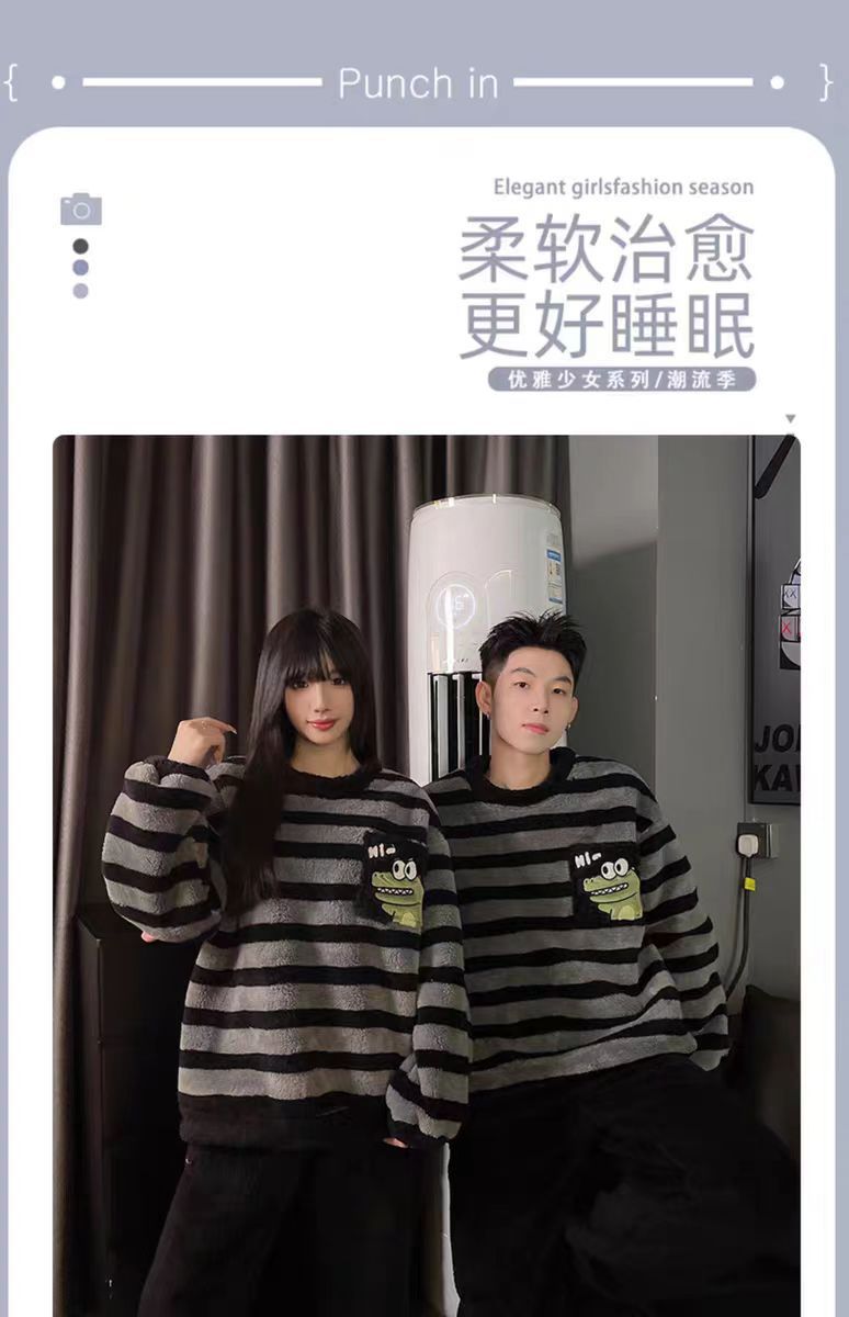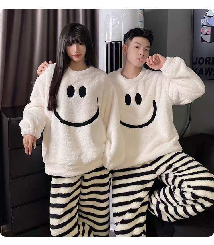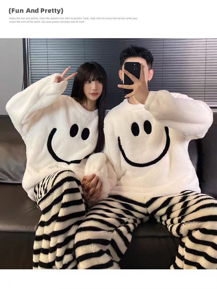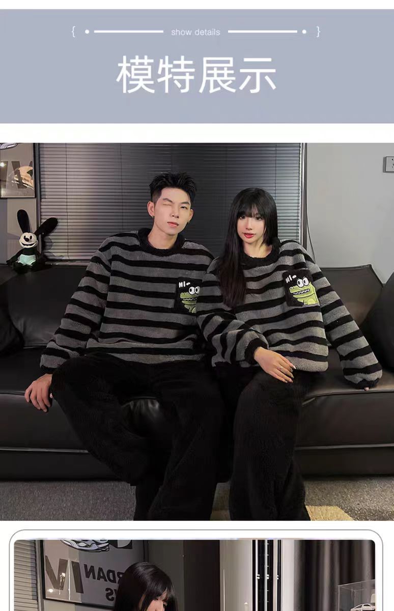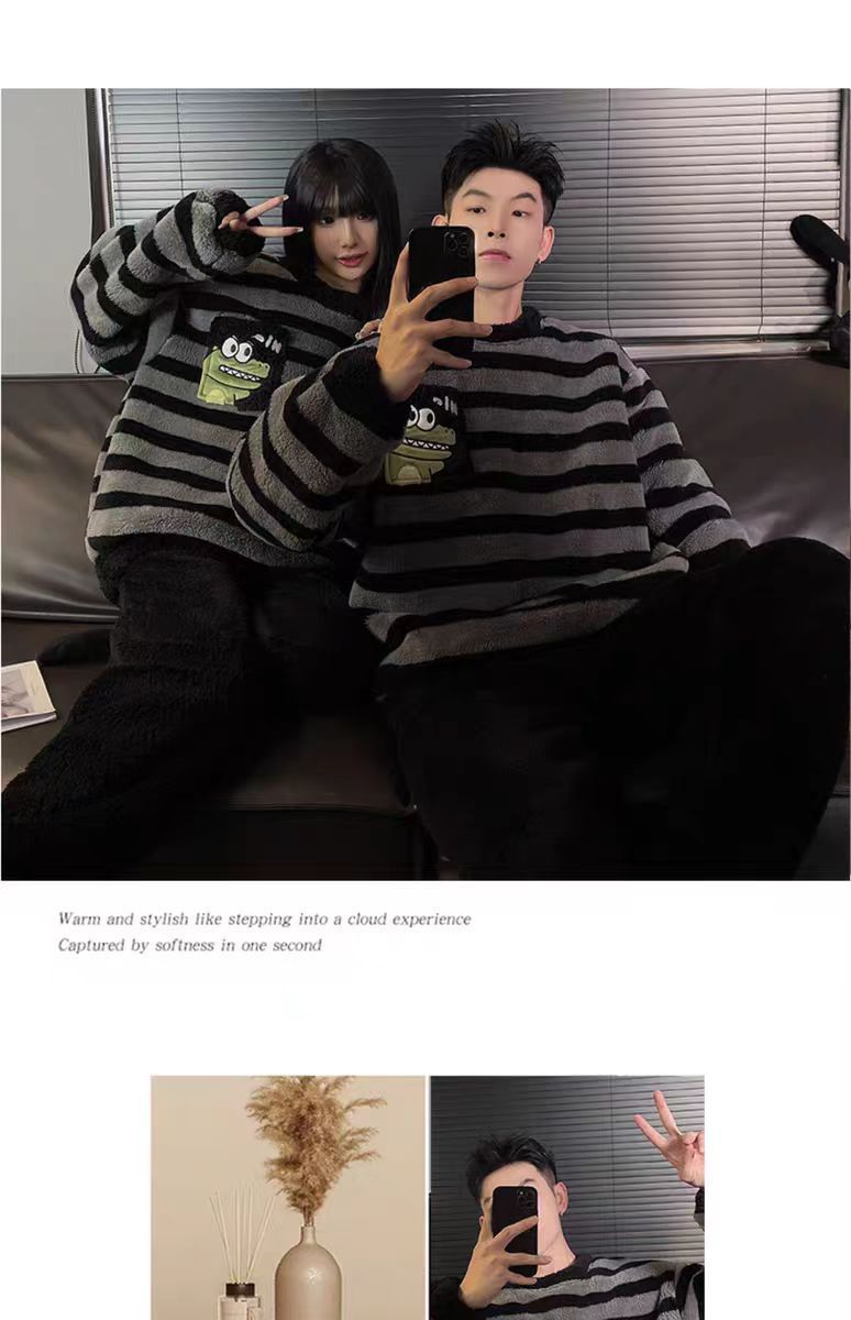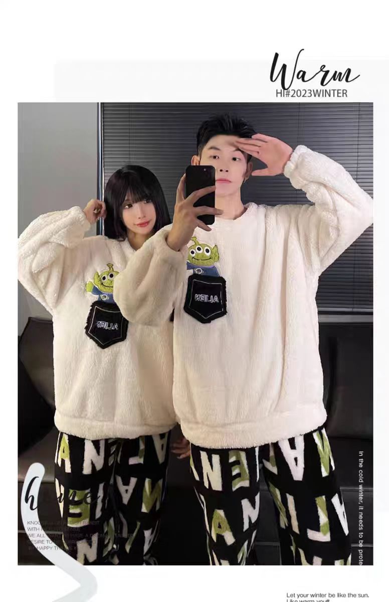 커플 잠옷 여성의 가을과 겨울 플란넬 간단한 만화 산호 양털 남자의 겨울 두꺼운 기모 홈 옷 세트스토어 가기