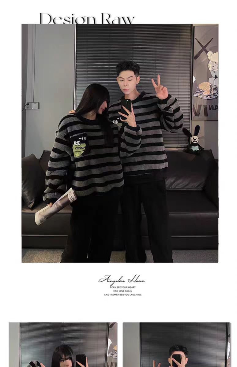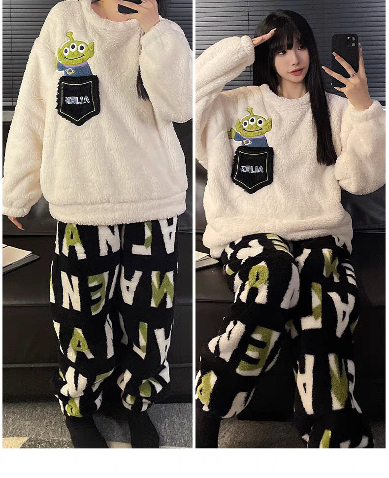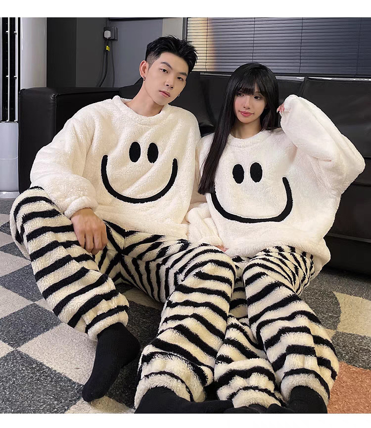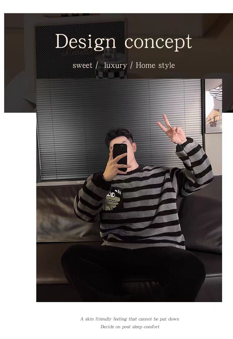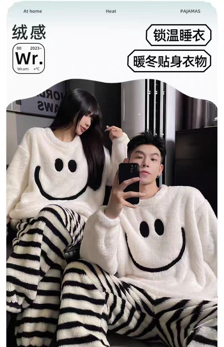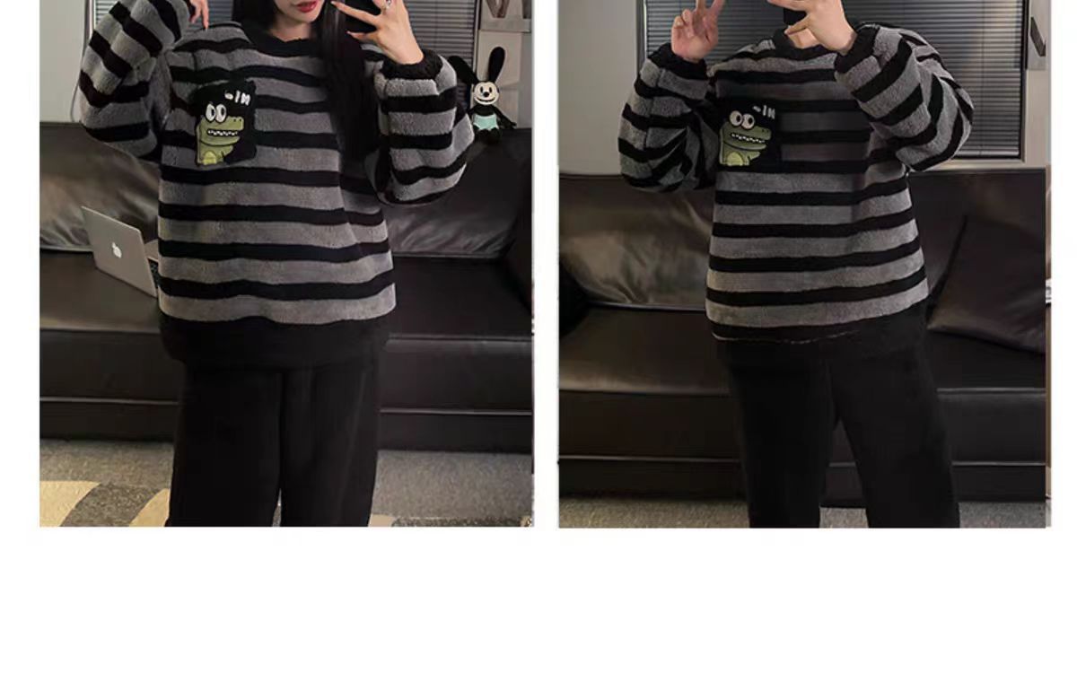 커플 잠옷 여성의 가을과 겨울 플란넬 간단한 만화 산호 양털 남자의 겨울 두꺼운 기모 홈 옷 세트스토어 가기