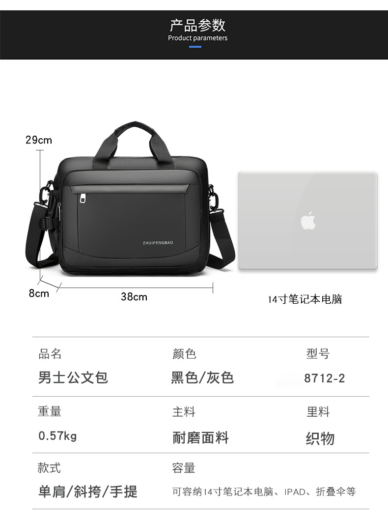 비즈니스 남성 컴퓨터 가방 하이 엔드 센스 패션 여성 핸드백 캐주얼 경량 서류 가방 통근 방수 어깨 가방