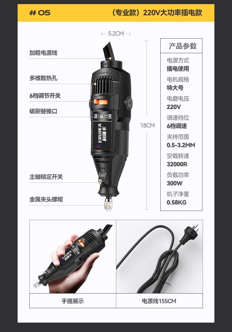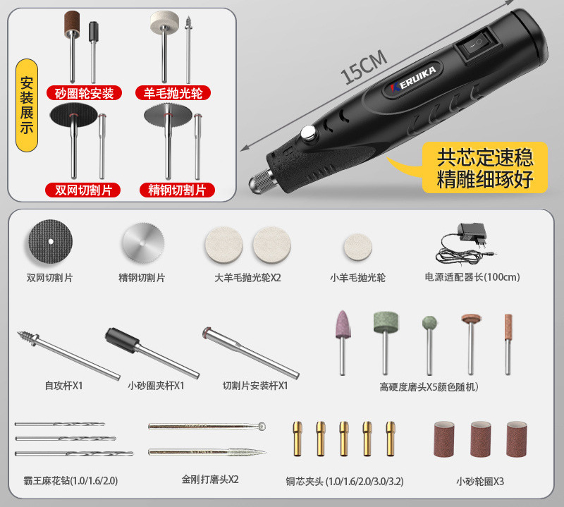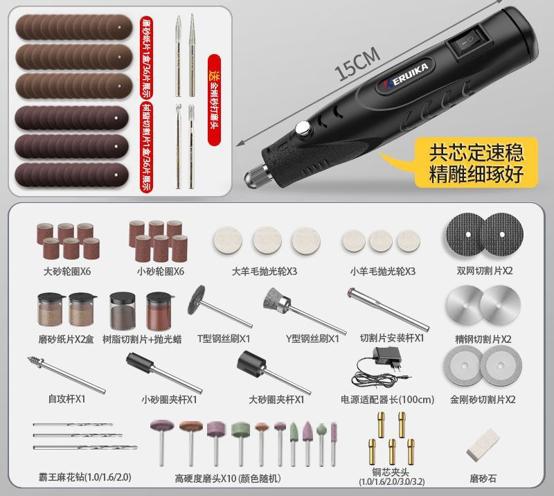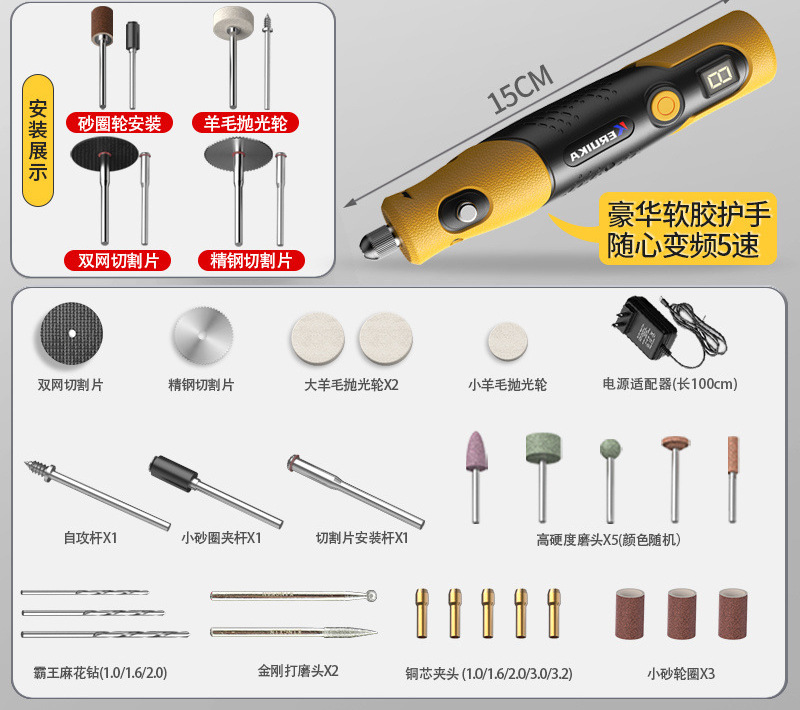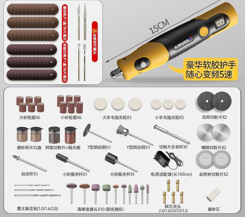 • [플러그인 24V] - AI 디지털 디스플레이/5단 속도 조절 - 마스터 옵션 + 나무 조각 및 돌 조각 패키지