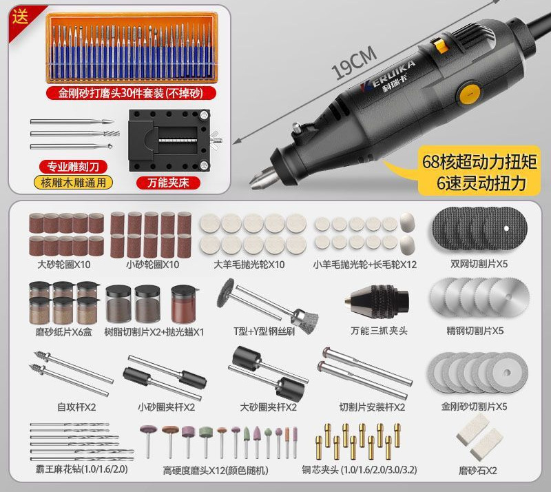 • [강력한 모터 300W] - 6단 속도 조절/목각 및 옥조각 - 만능 상판 + 목재 + 옥 + 석재 + 범용 조각