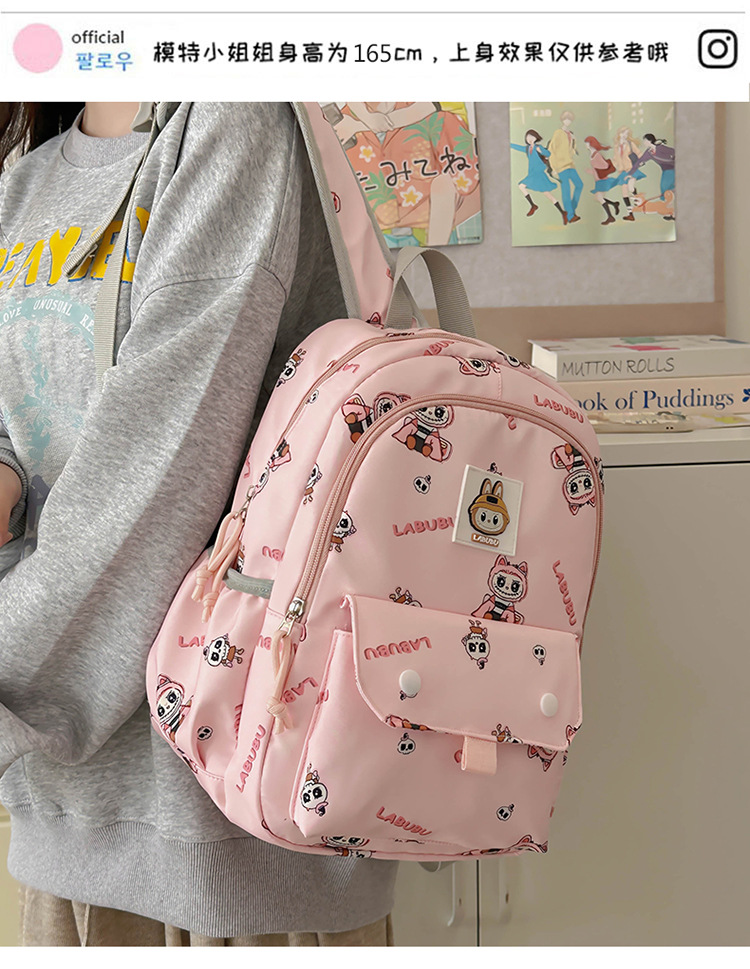 학생 배낭 여성의 2024 새로운 Schoolbag 유행 Labubu 대용량 캐주얼 배낭 도매 국경스토어 가기