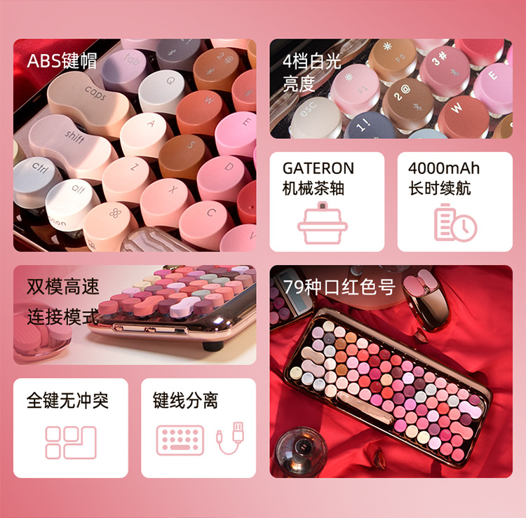 Lofree Lofree 립스틱 기계 키보드 마우스 세트 무선 블루투스 소녀 사무실 컴퓨터 태블릿 ipab
