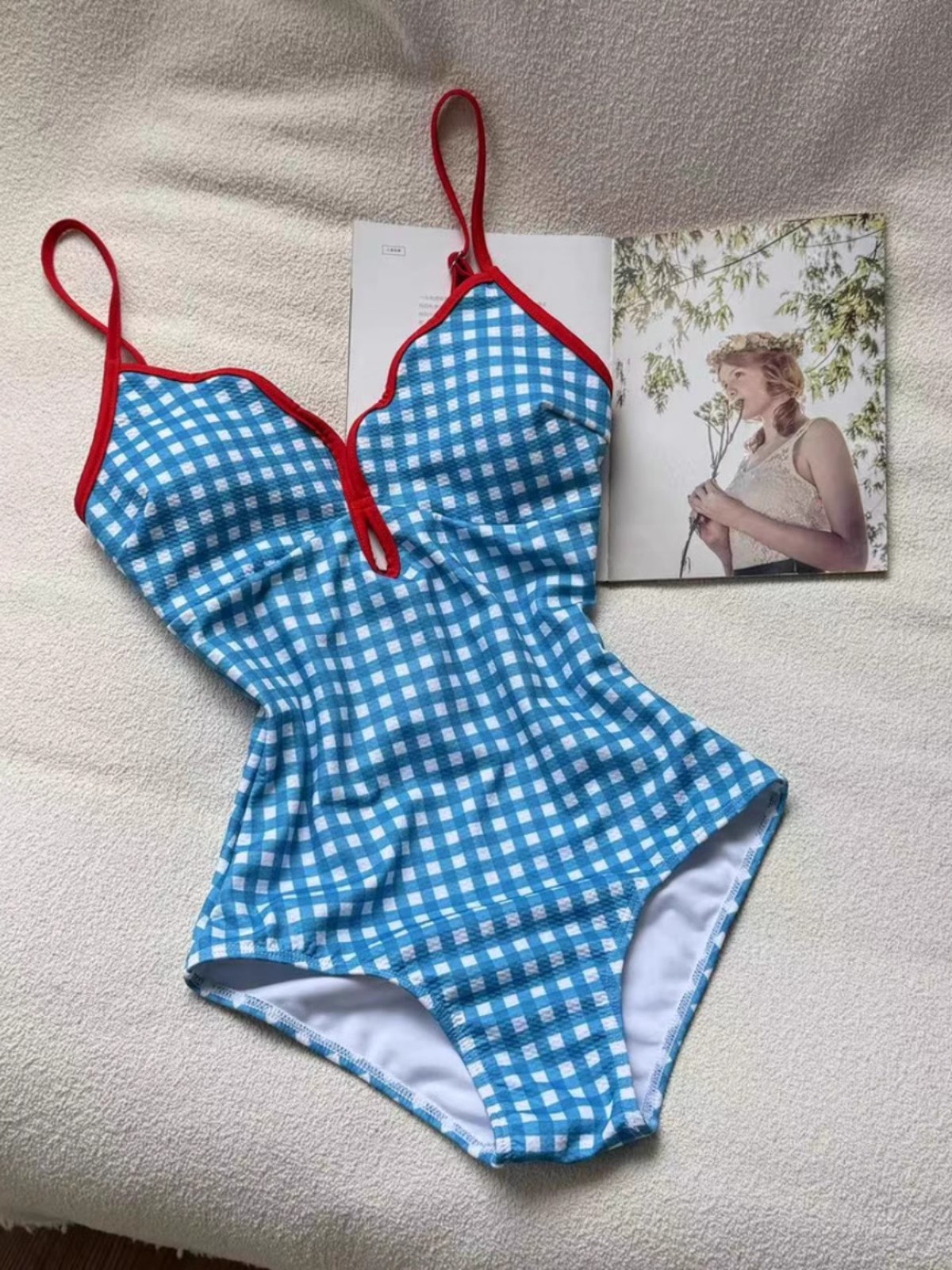 수영복 여성 온천 빈티지 플레이드 2 피스 원피스 통통녀 배꼽이 보수적 인 해변 휴가에 대한 순수한 욕망