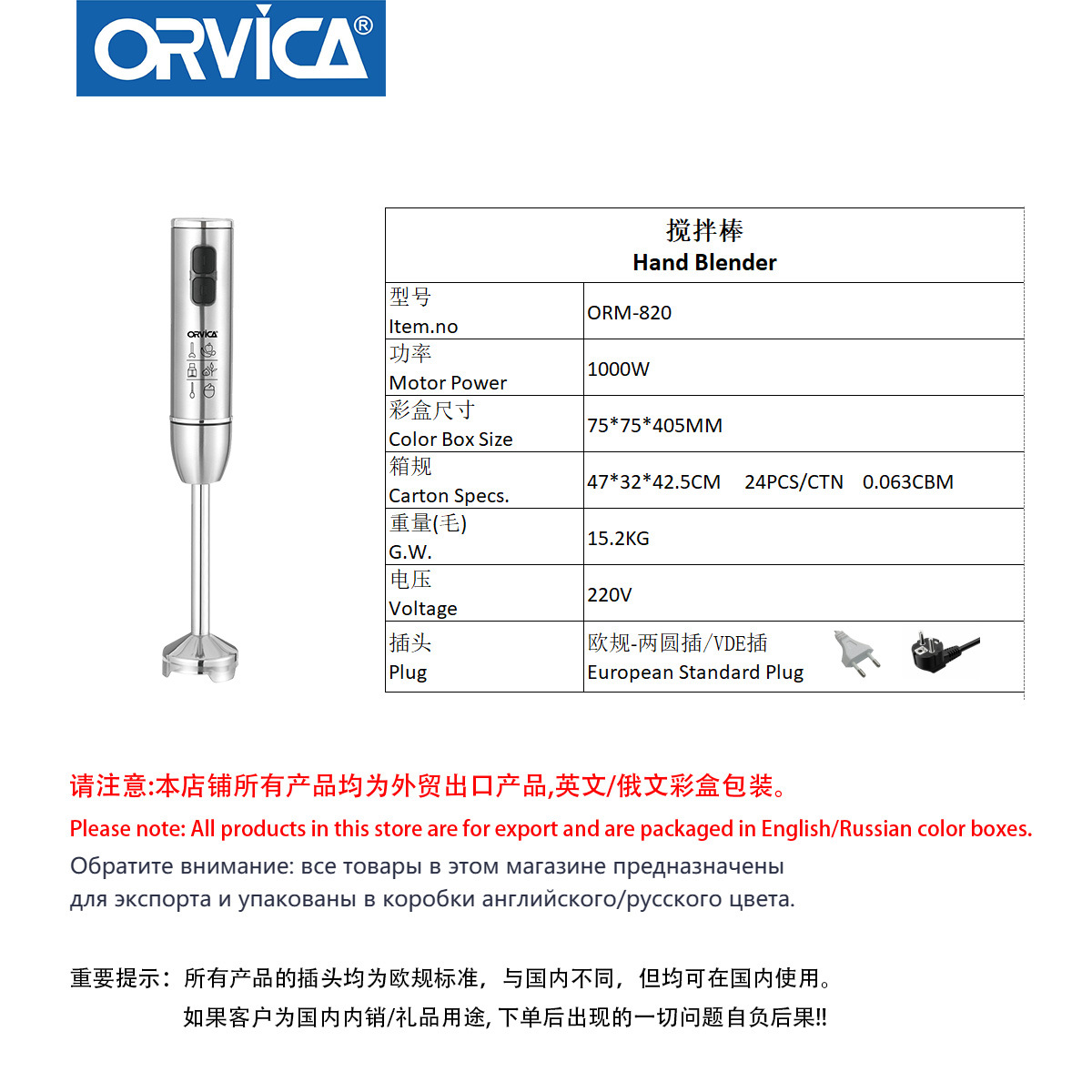 ORVICA 국경 간 무역 주방 식품 가공기 가정용 믹싱 스틱 믹서기 요리 기계 주스 추출기스토어 가기
