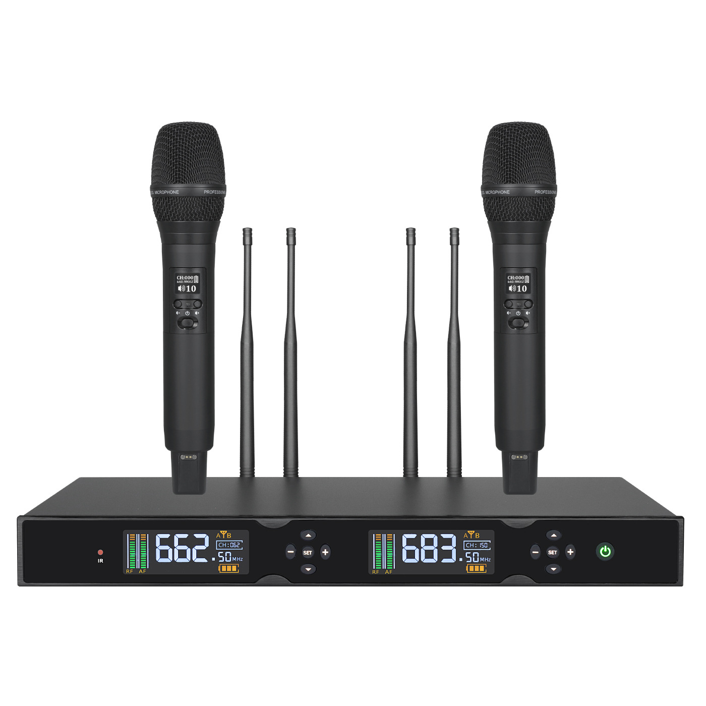 Langsheng 공장 도매 진정한 다양성 무선 마이크 한 드래그 두 FM 동적 코일 성능 KTV 전문 마이크