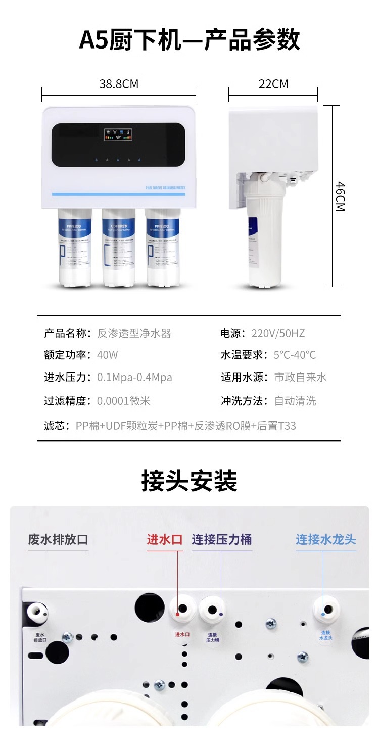 가정용 정수기 로 역 삼투압 정수기 주방 수돗물 필터 주방 직접 식수 청정기 800G