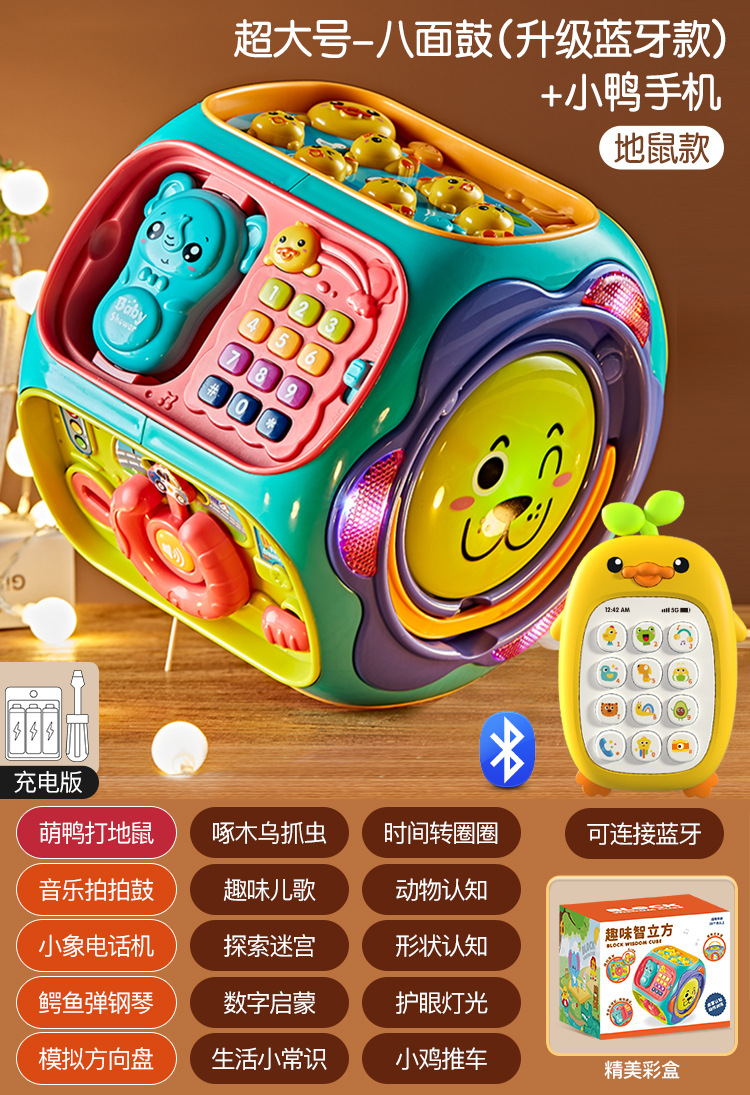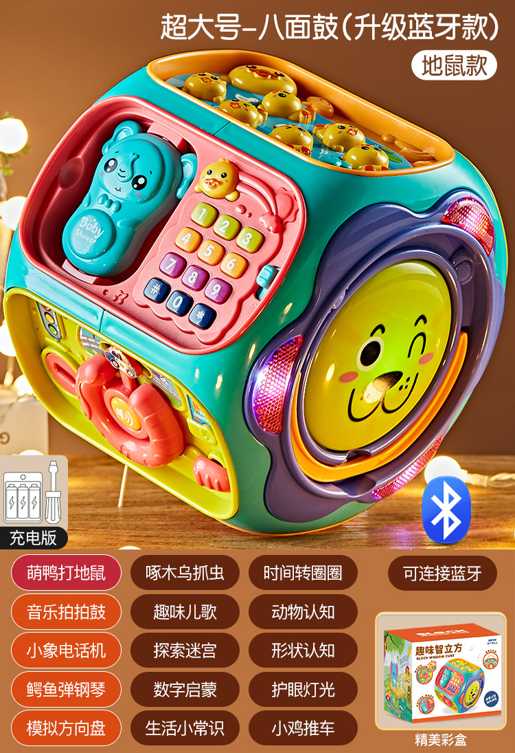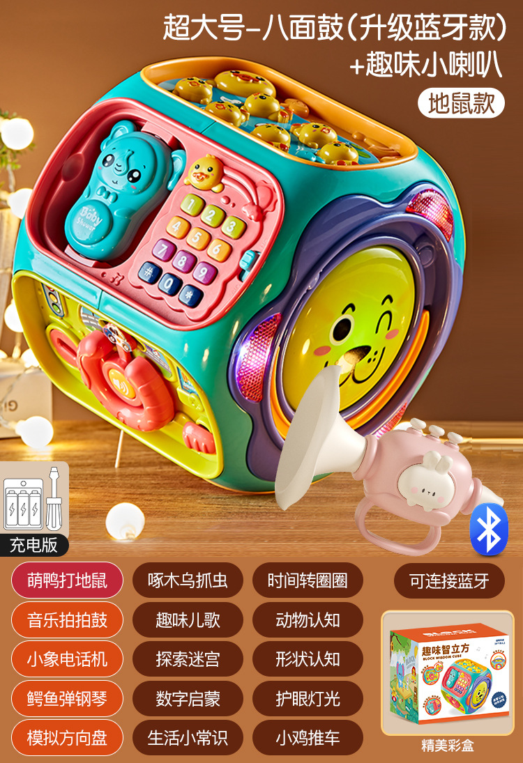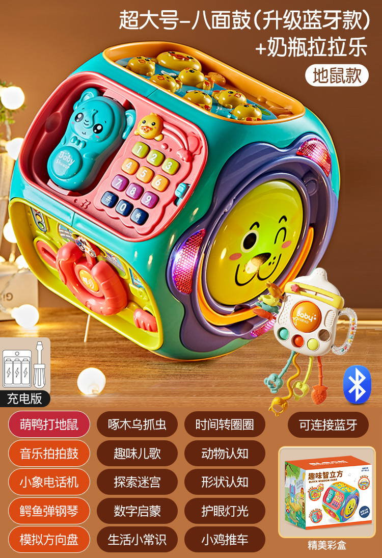 • [팔각드럼-고무기모형⭐선물 상자] 충전식 버전--블루투스 + 젖병 치어라 재미 포함