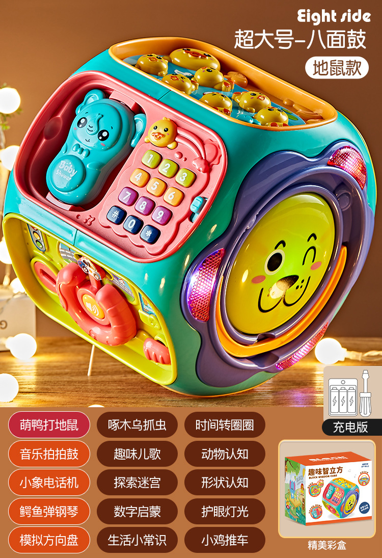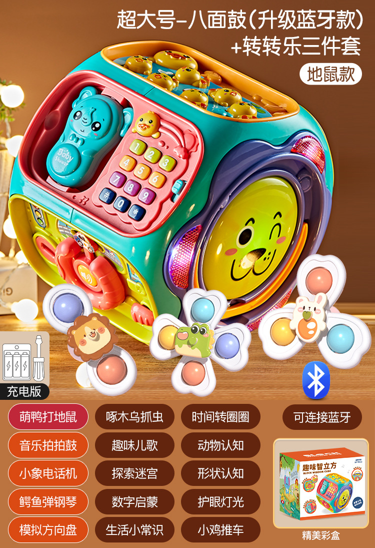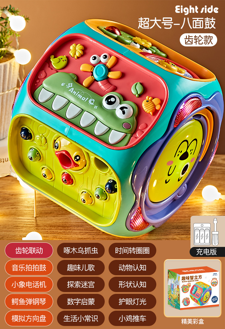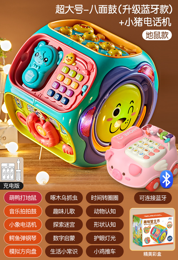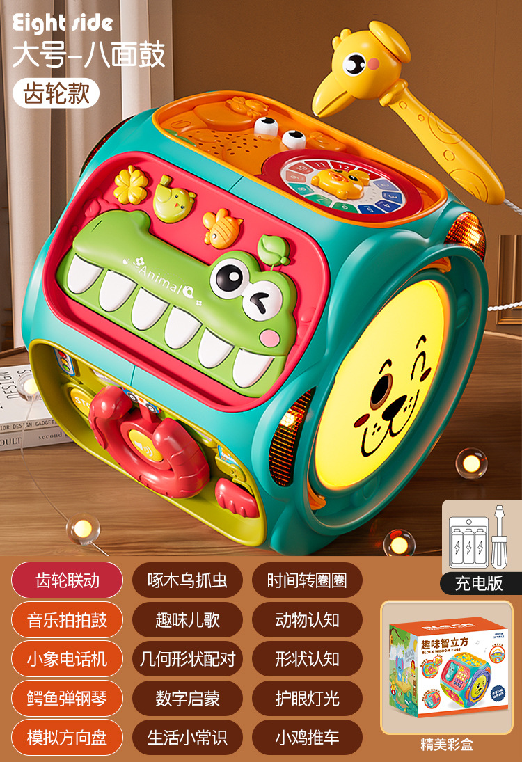 • [팔각드럼-고무기모형⭐선물 상자] 충전식 버전--블루투스 + 젖병 치어라 재미 포함