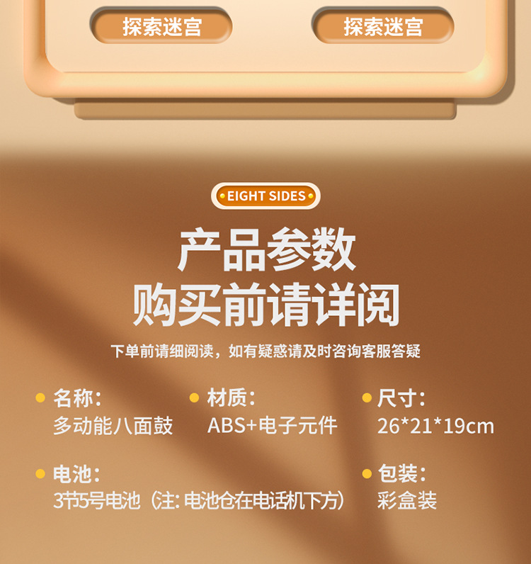 • [팔각드럼-고무기모형⭐선물 상자] 배터리 버전--블루투스 없음.
