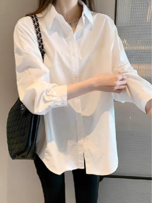 여성용 흰색 셔츠 2025년 신상 한국 스타일 디자인 유니크하고 세련된 상의 외출용 다용도 캐주얼 셔츠 도매스토어 가기