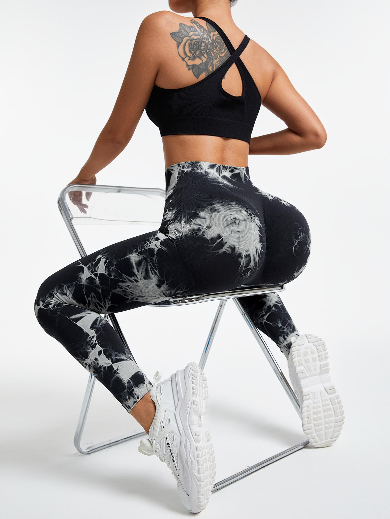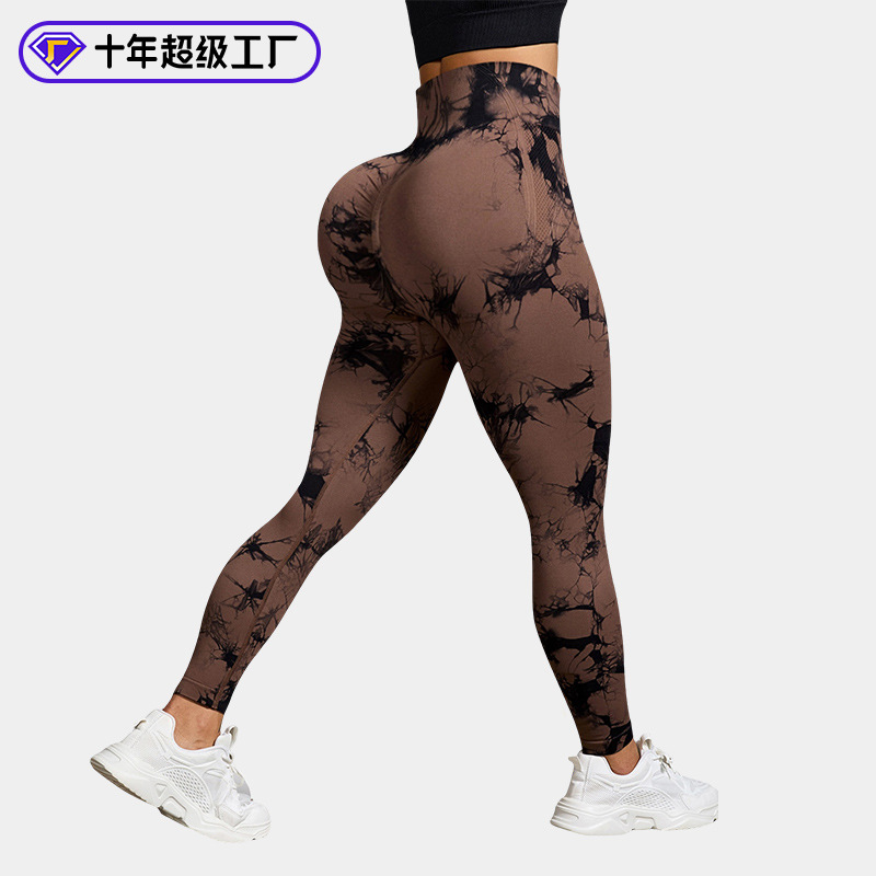 유럽과 미국의 타이-염료 요가 바지 여성의 높은 허리 타이트 타이트 스포츠베이스 복숭아 힙합 리프팅 러닝 피트니스 압축 바지