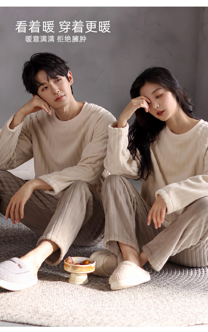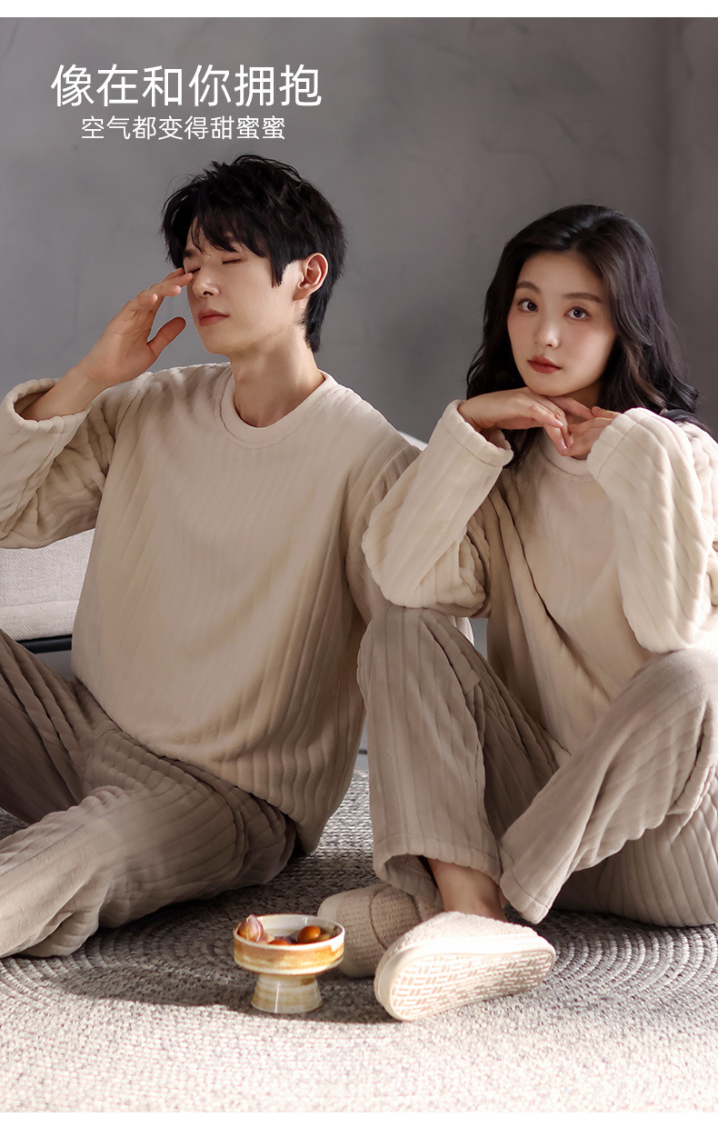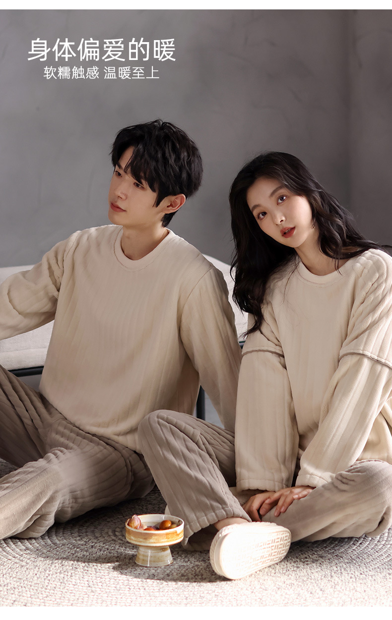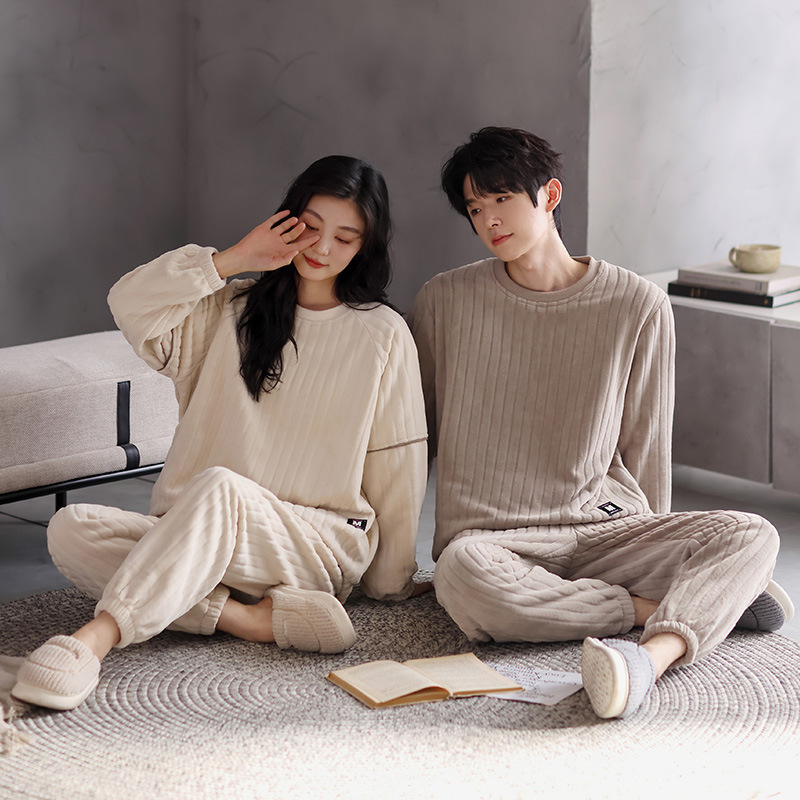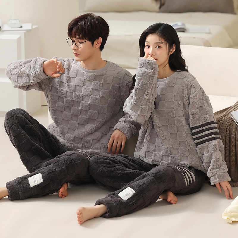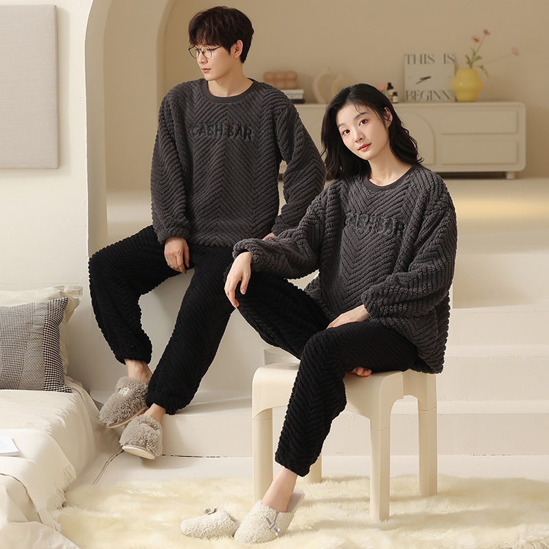 잠옷 커플의 겨울 플란넬 두꺼운 따뜻한 기모 크루 넥 풀오버 플란넬 간단한 캐주얼 홈 의류 세트스토어 가기
