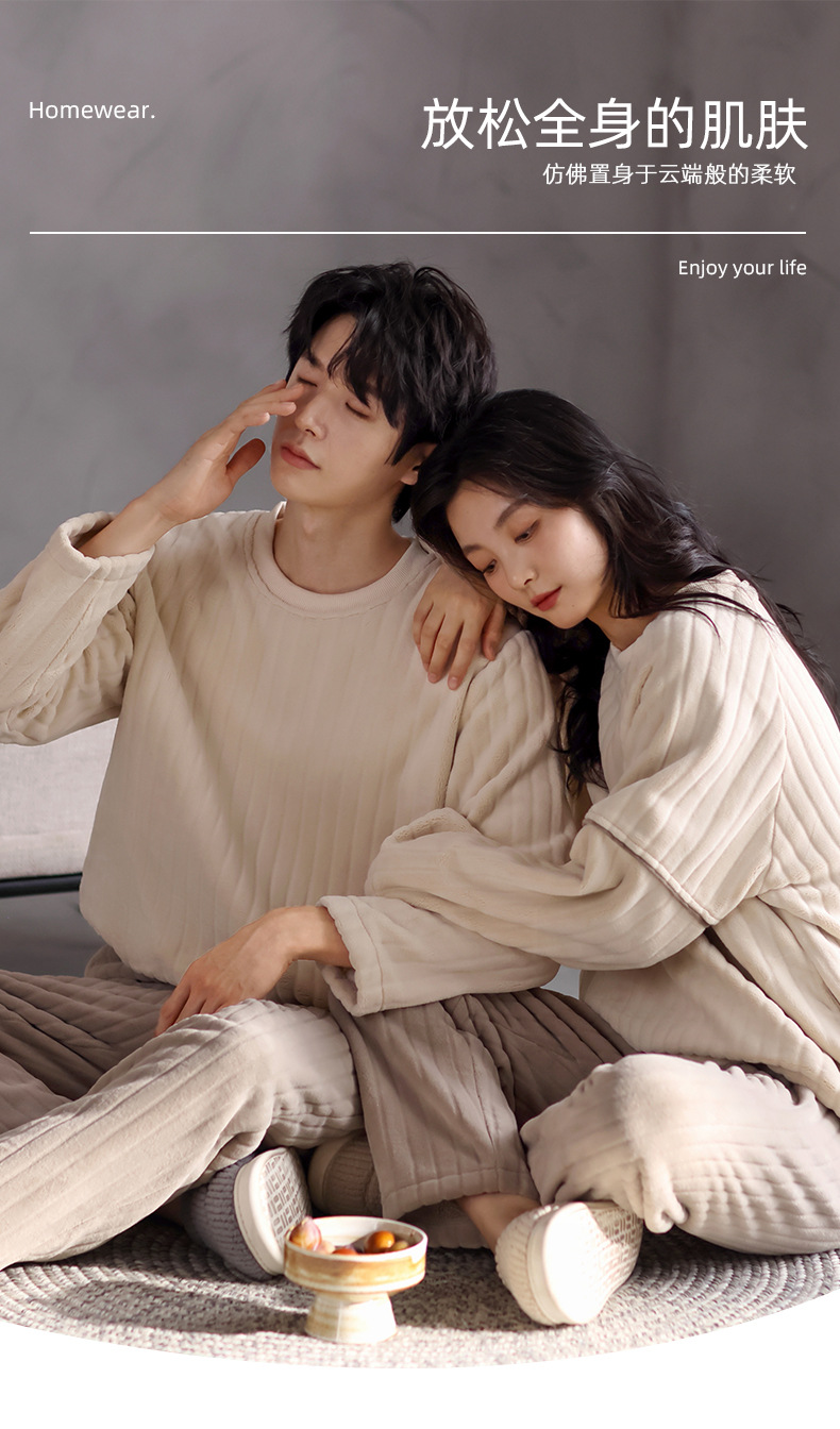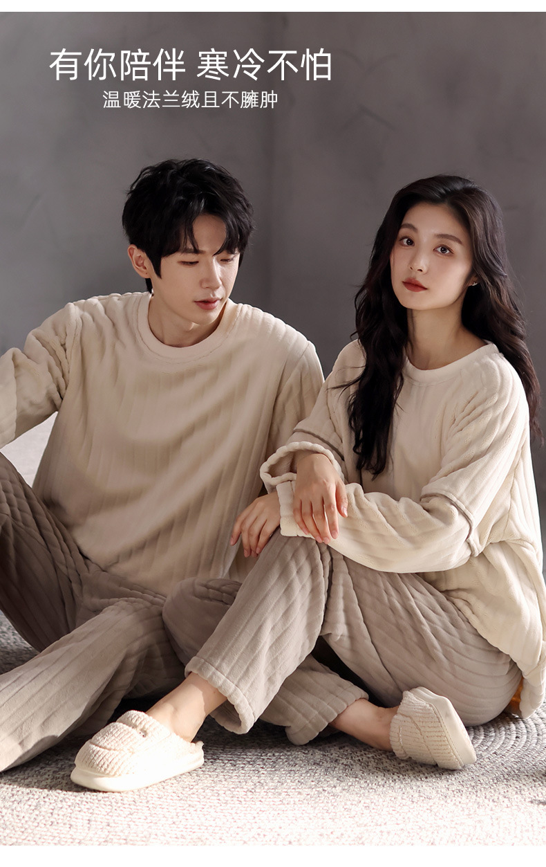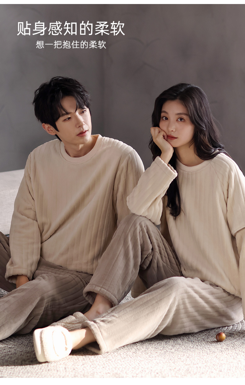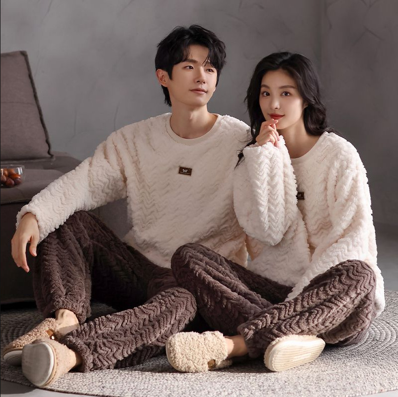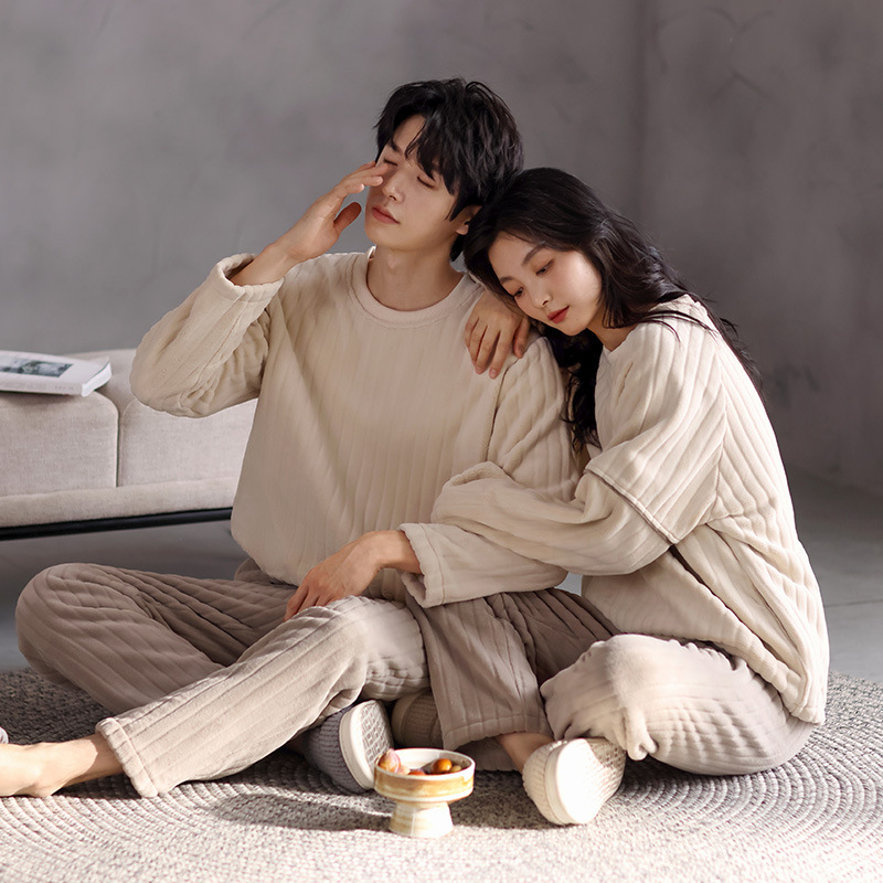 잠옷 커플의 겨울 플란넬 두꺼운 따뜻한 기모 크루 넥 풀오버 플란넬 간단한 캐주얼 홈 의류 세트스토어 가기