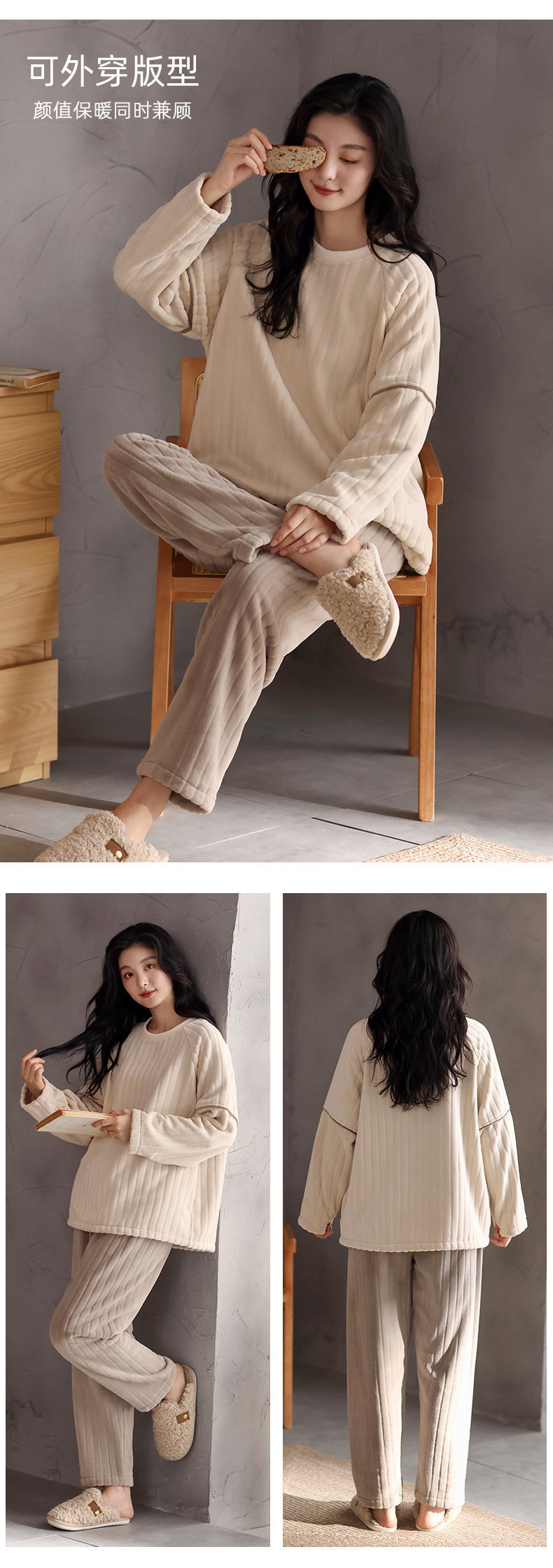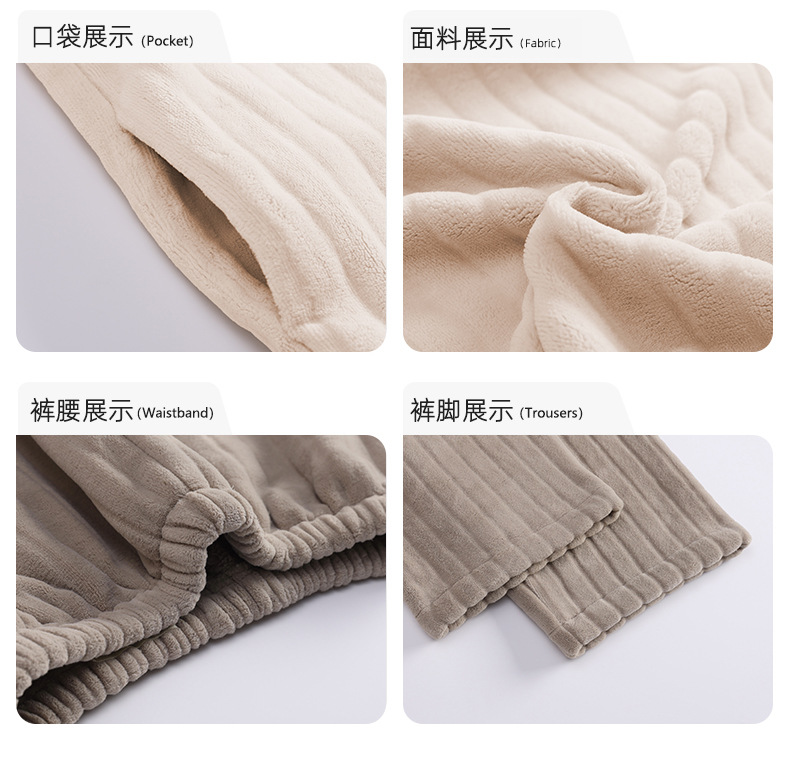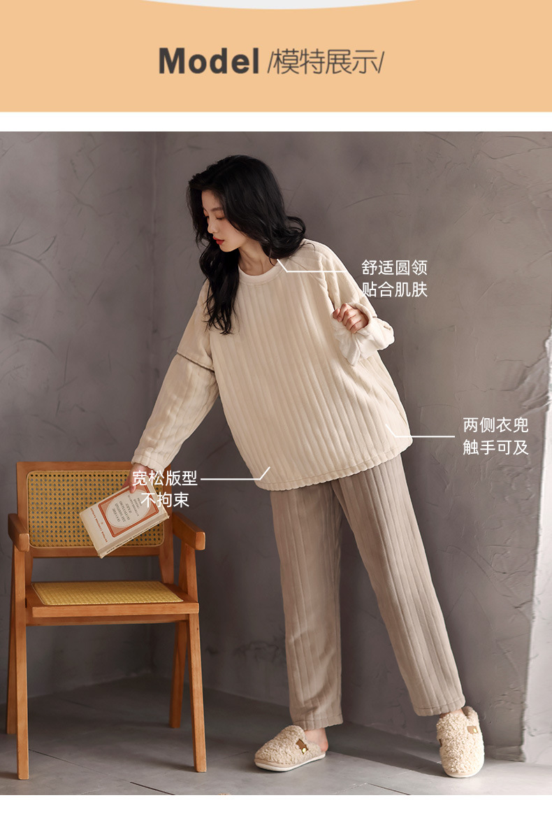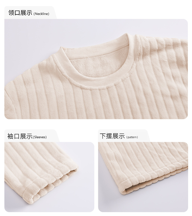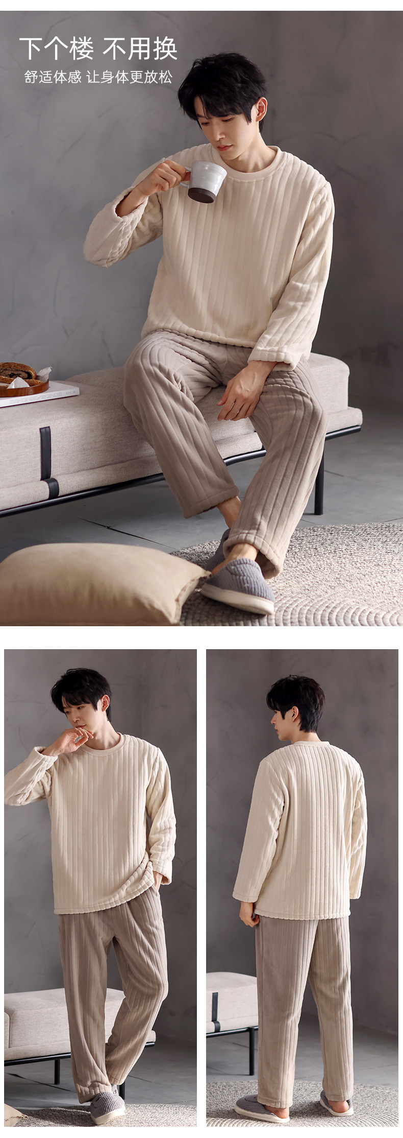 잠옷 커플의 겨울 플란넬 두꺼운 따뜻한 기모 크루 넥 풀오버 플란넬 간단한 캐주얼 홈 의류 세트스토어 가기
