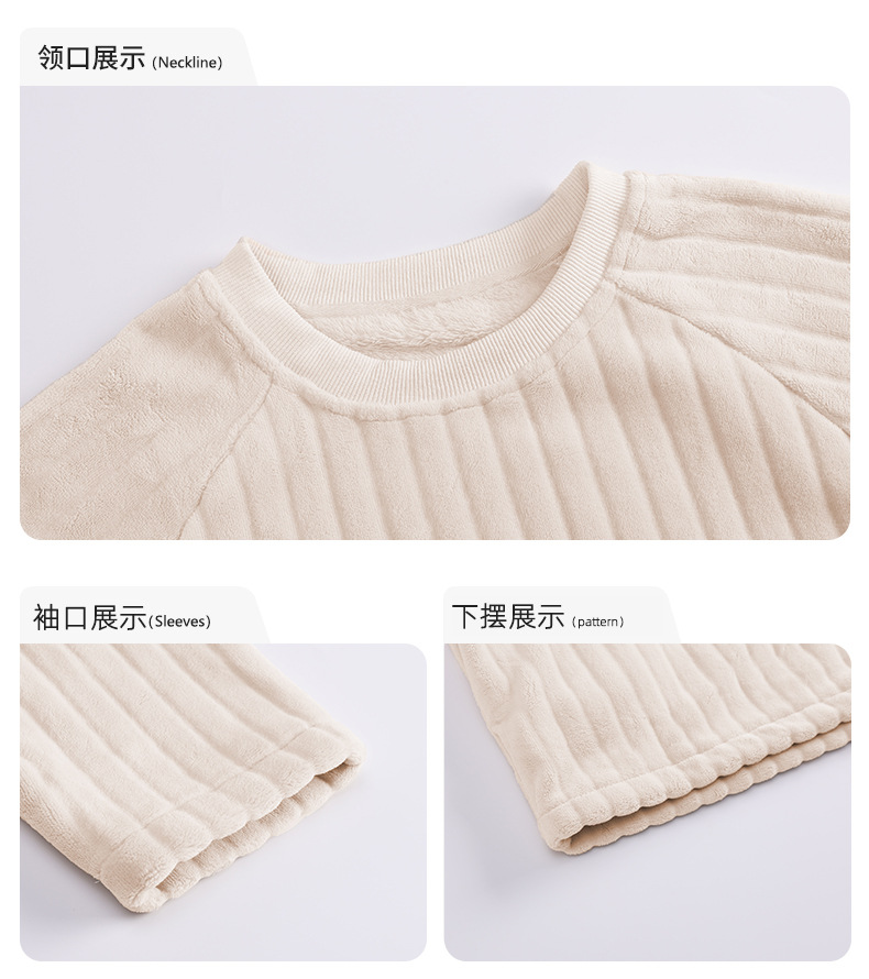 잠옷 커플의 겨울 플란넬 두꺼운 따뜻한 기모 크루 넥 풀오버 플란넬 간단한 캐주얼 홈 의류 세트