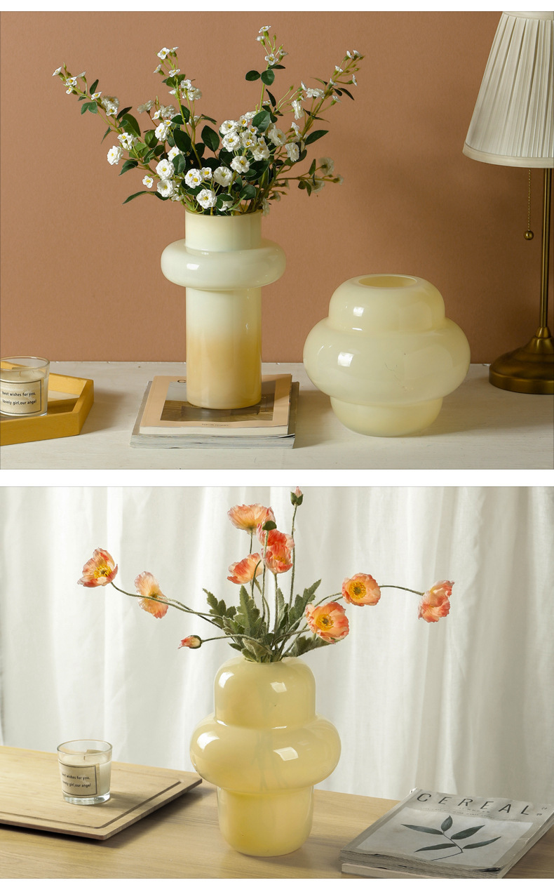 중세 유리 꽃병 거실 꽃꽂이 수경 빈티지 홈 식탁 장식 인터넷-인기있는 크림 스타일 장식 가벼운 고급 꽃스토어 가기
