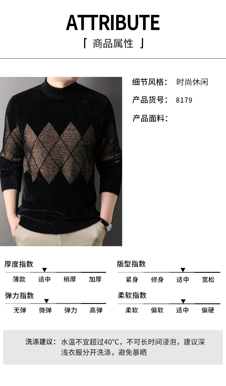 2024 가을과 겨울 새로운 두꺼운 모방 밍크 캐시미어 스웨터 남자 모의 높은 칼라 자카드 따뜻한 베이스 스웨터