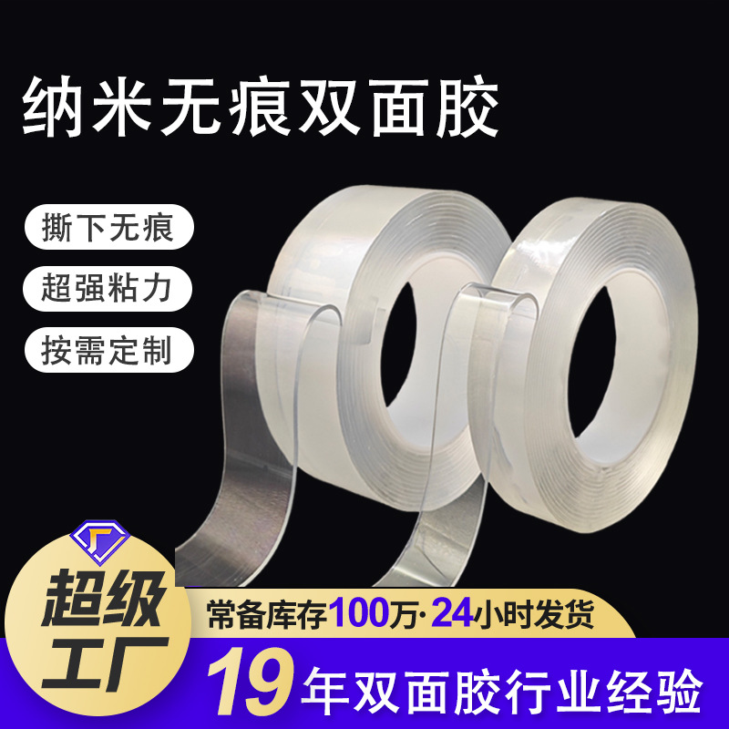 加厚圆形无痕胶高透纳米胶强粘 超薄可水洗强力粘纳米无痕双面胶