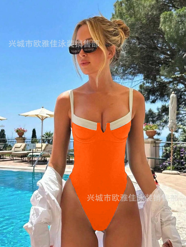 2024 원피스 수영복 여성 국경 유럽 및 미국 비키니 새로운 여성 스티칭 대외 무역 수영복 도매 비키니