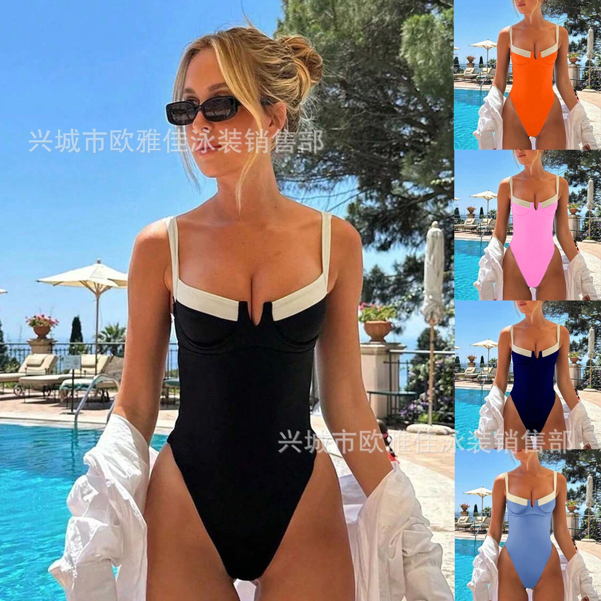 2024 원피스 수영복 여성 국경 유럽 및 미국 비키니 새로운 여성 스티칭 대외 무역 수영복 도매 비키니스토어 가기
