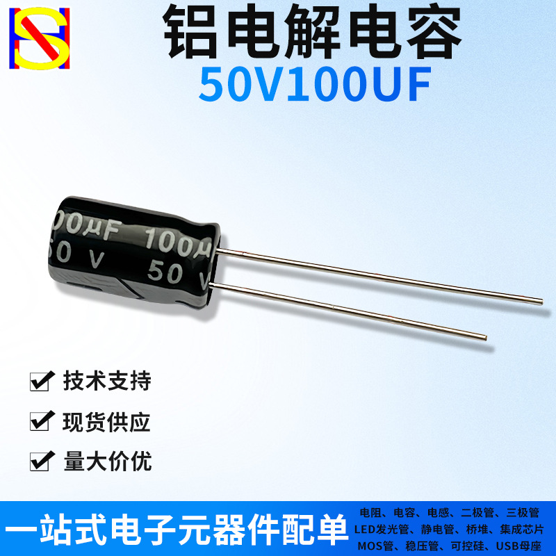 단일 50V100UF 8X12mm 직선 플러그인 알루미늄 전해 콘덴서가있는 원 스톱 전자 부품스토어 가기