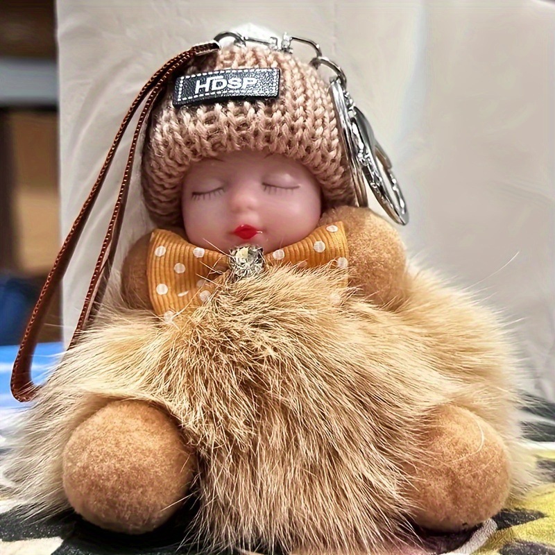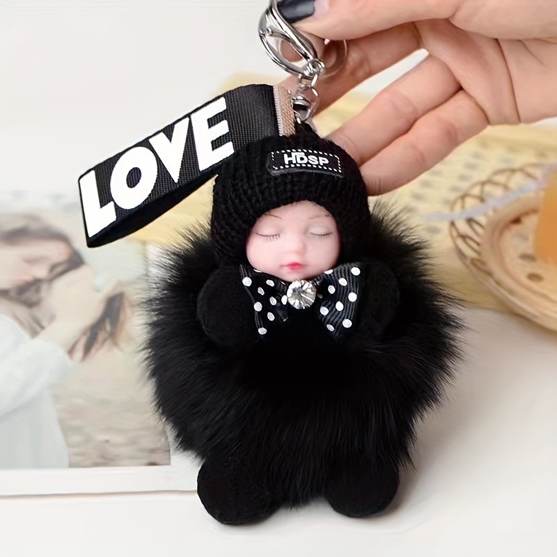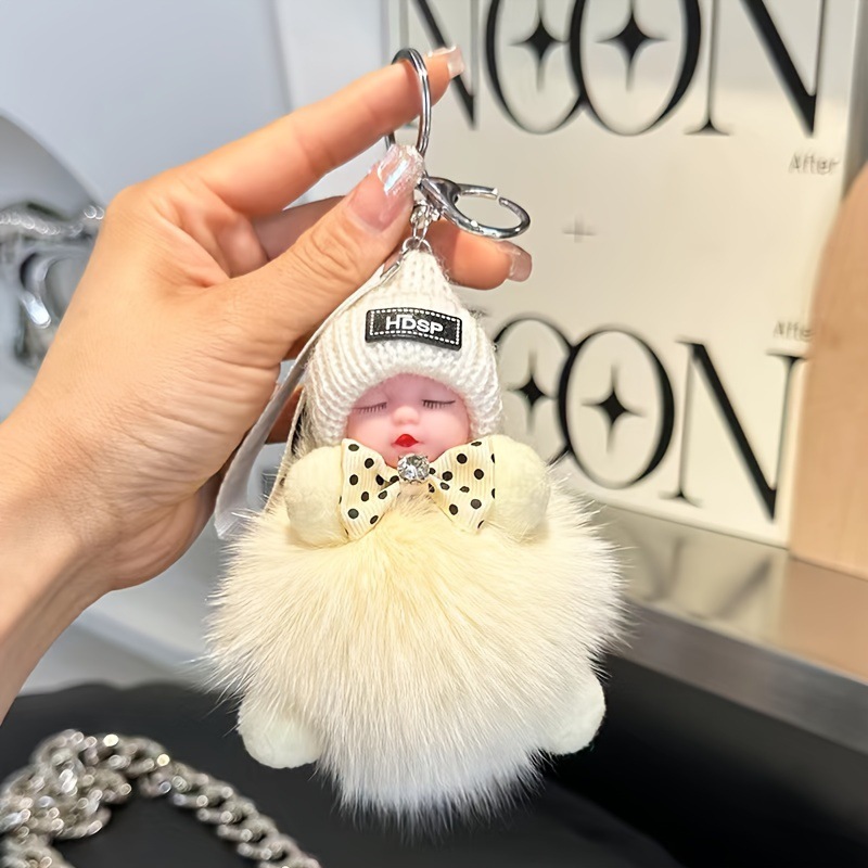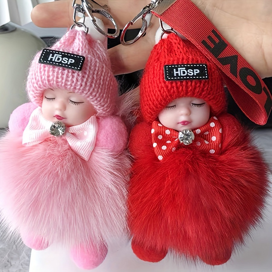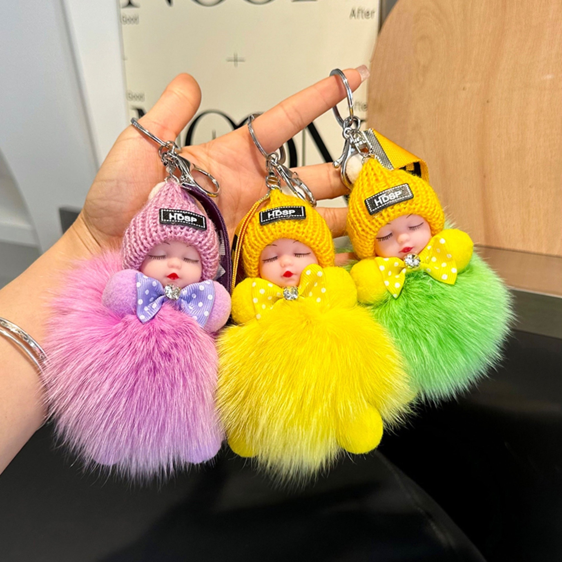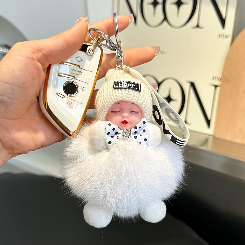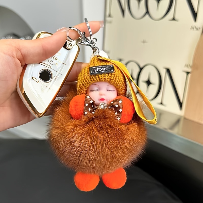 진짜 여우 모피 인형 자동차 키 체인 매달려 귀여운 봉제 인형 인형 가방 펜던트 커플 선물