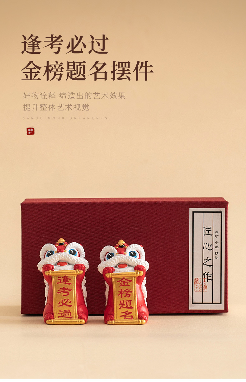 창조적 인 중국 스타일 불산 사자 춤 돌 사자 장식품은 1 번 시험을 통과해야합니다 모든 시험 선물 생일 선물