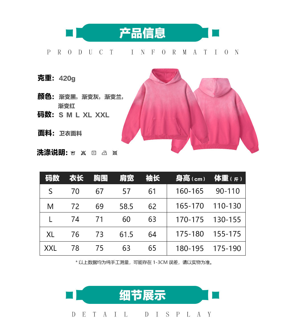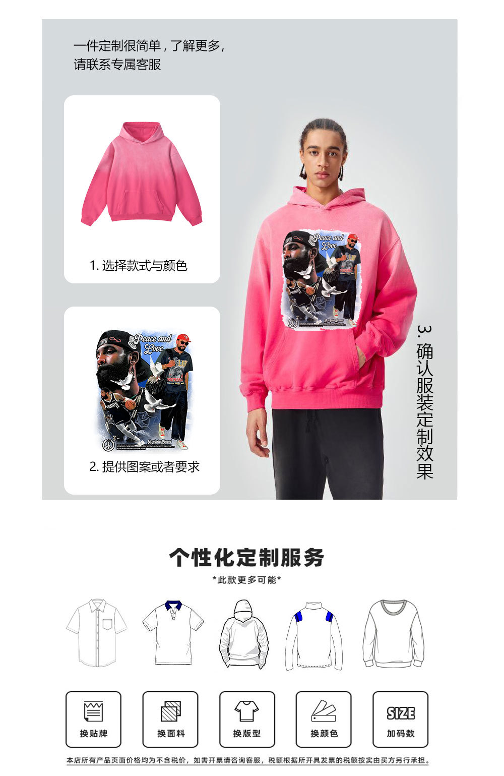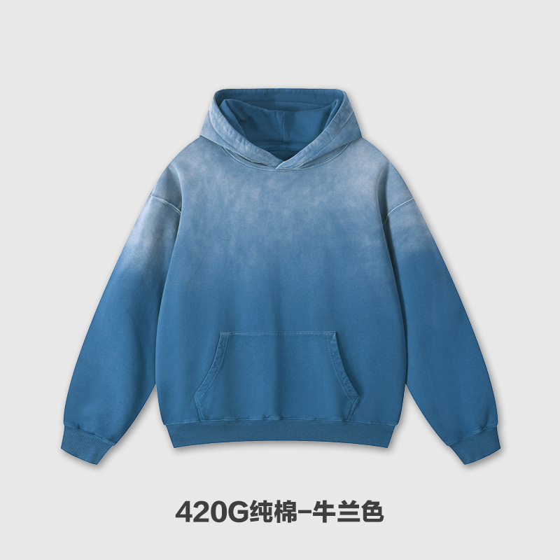무거운 420G 씻은 레트로 남자의 가을/겨울 착용 느슨한 후디웨어 남성 패션 브랜드 점진적 색상 사용자 정의스토어 가기