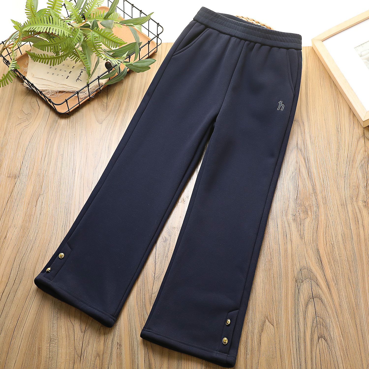 2024 새로운 가을과 겨울 스타일 소년 소녀 슬리밍 슬림 핏 버튼 기모 두꺼운 캐주얼 바지 배치
