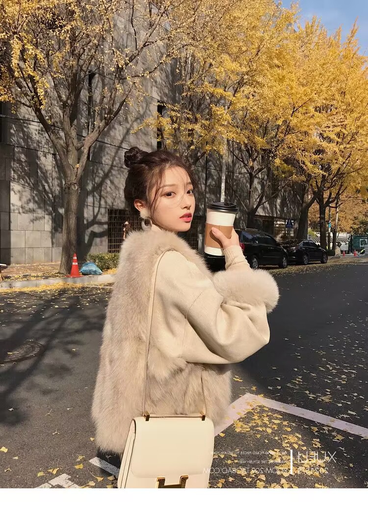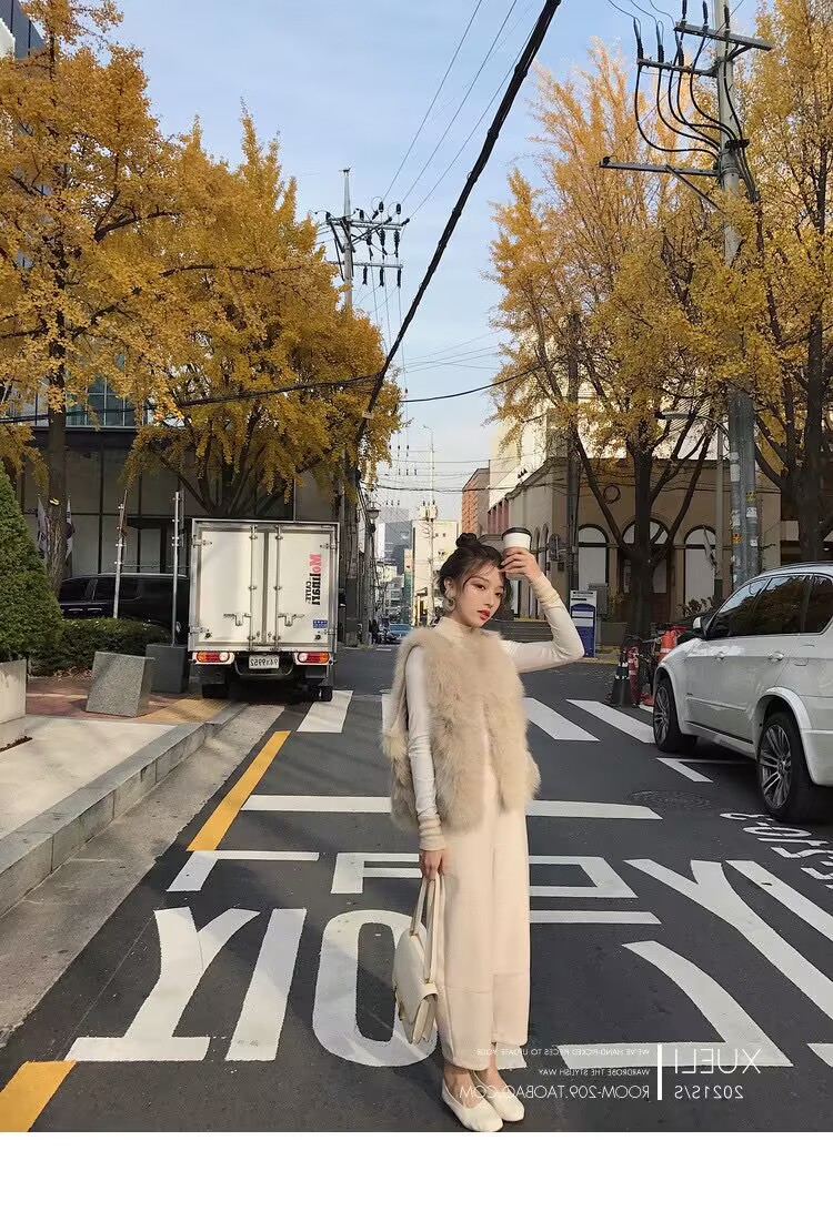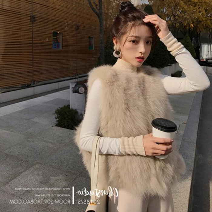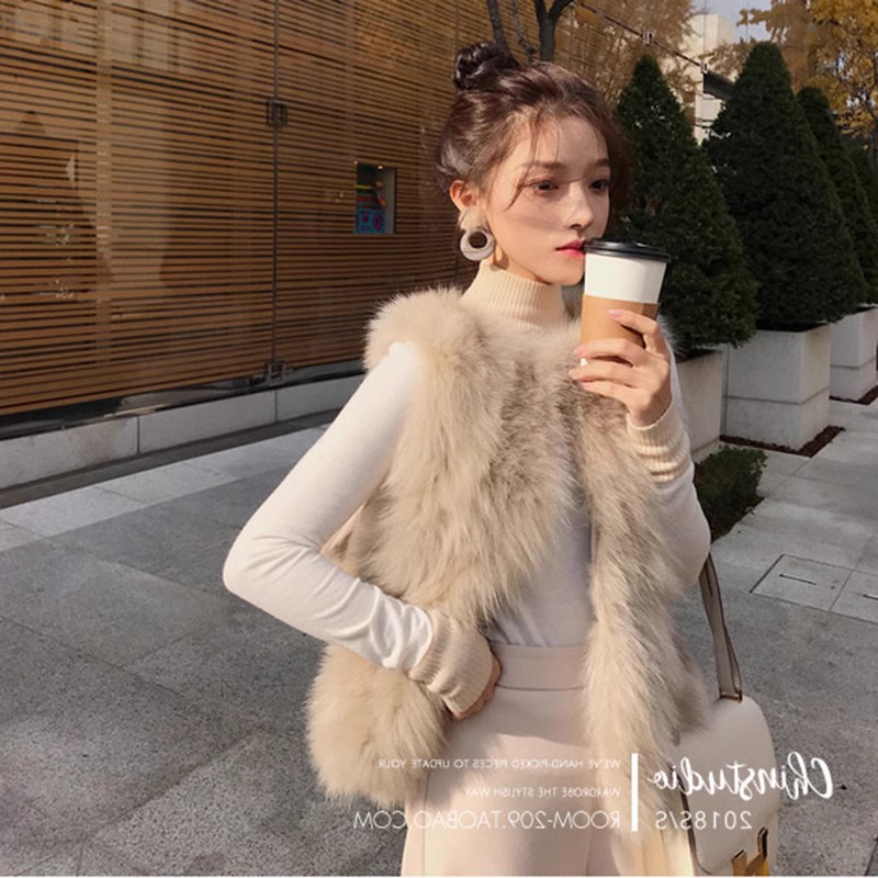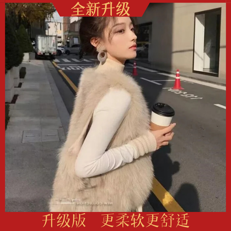 모피 조끼 여성의 가을과 겨울 새로운 가짜 폭스 모피 조끼 짧은 느슨한 봉제 양털 재킷 슬림 핏 슬리밍 조끼스토어 가기