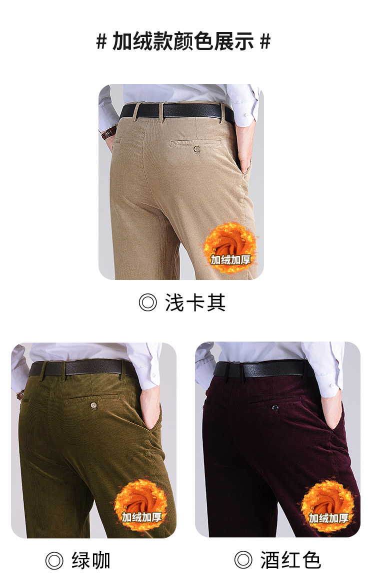 Corduroy 남성 캐주얼 바지 2024 가을과 겨울 새로운 순수한 중년 컬러 두꺼운 따뜻한 스트레이트 롱 바지 남성 도매