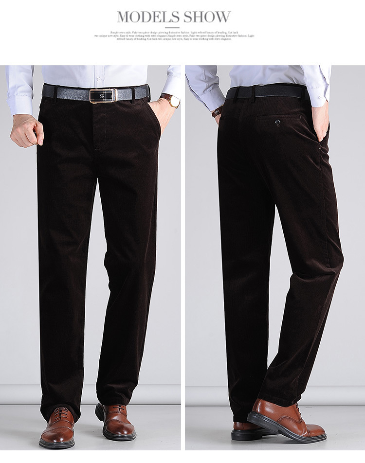 Corduroy 남성 캐주얼 바지 2024 가을과 겨울 새로운 순수한 중년 컬러 두꺼운 따뜻한 스트레이트 롱 바지 남성 도매스토어 가기
