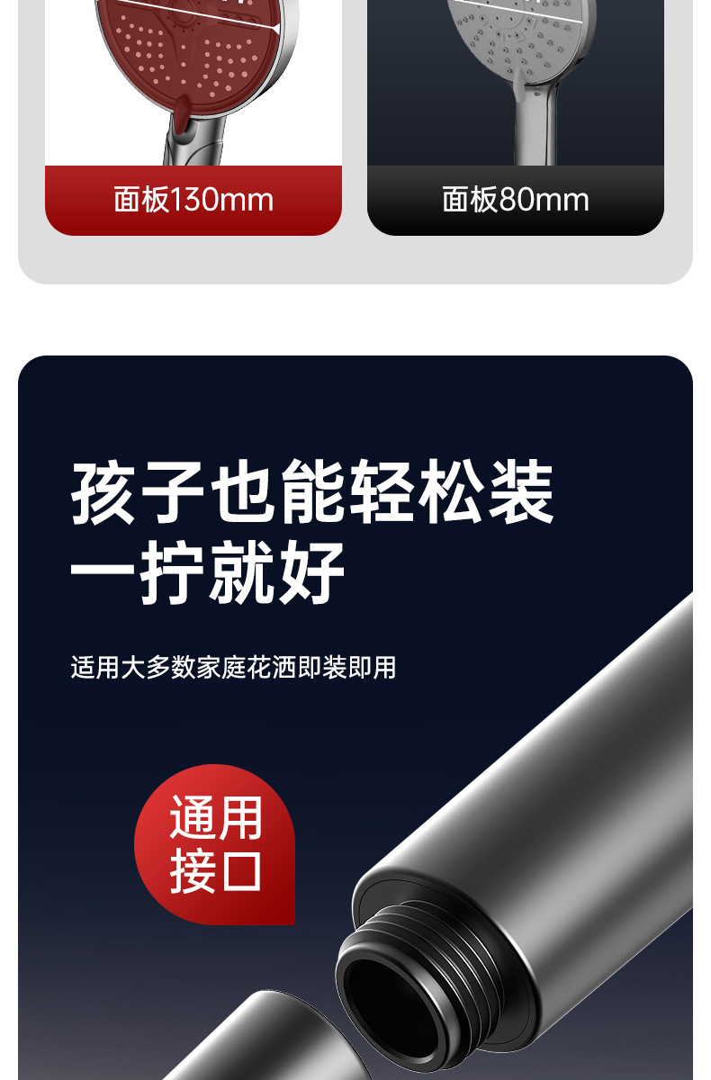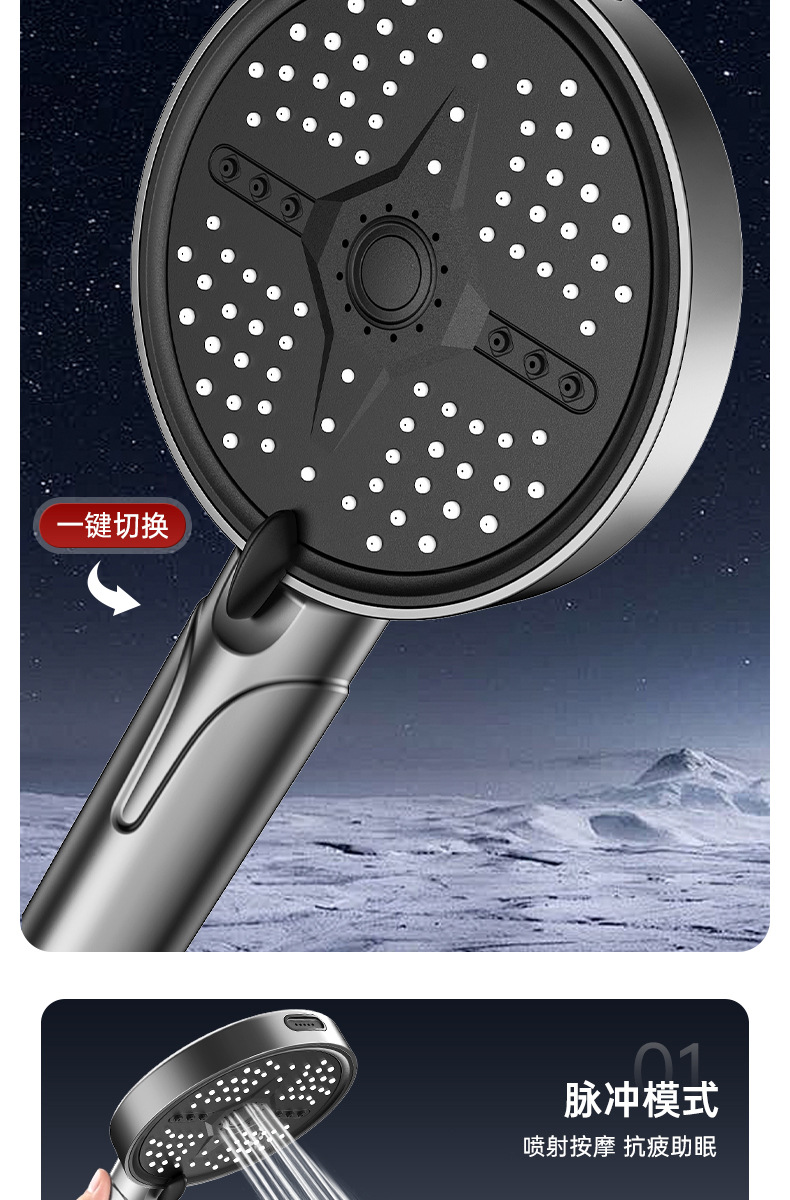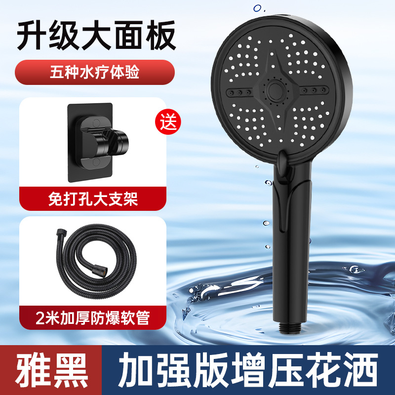 • Black Yaoxing 대형 페이스 슈퍼차지 5단 샤워 헤드