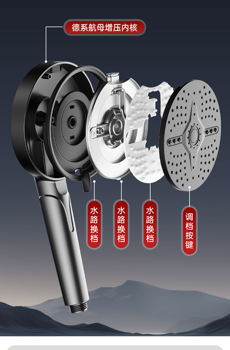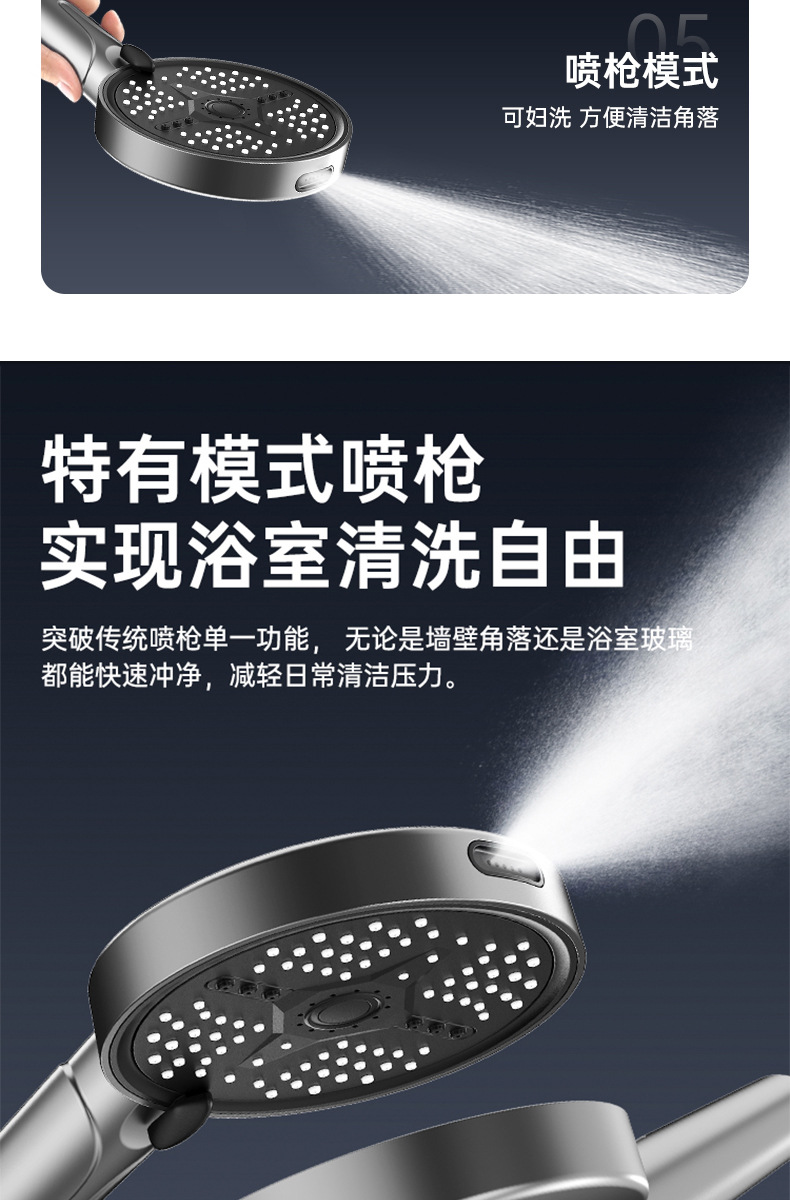 • 섀도우 그레이 스타 라지 페이스 슈퍼차지 5단 샤워기