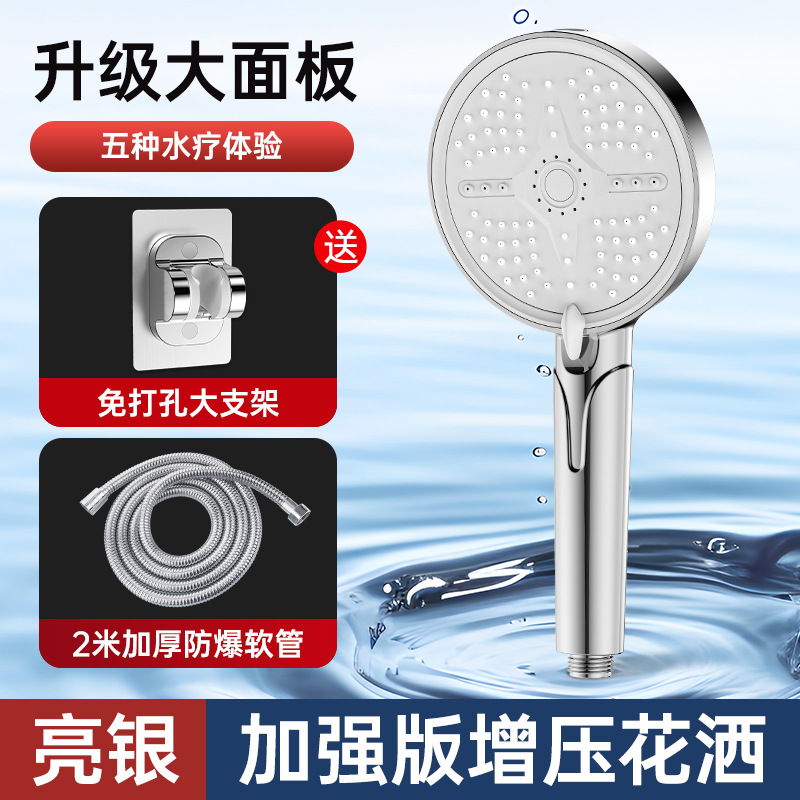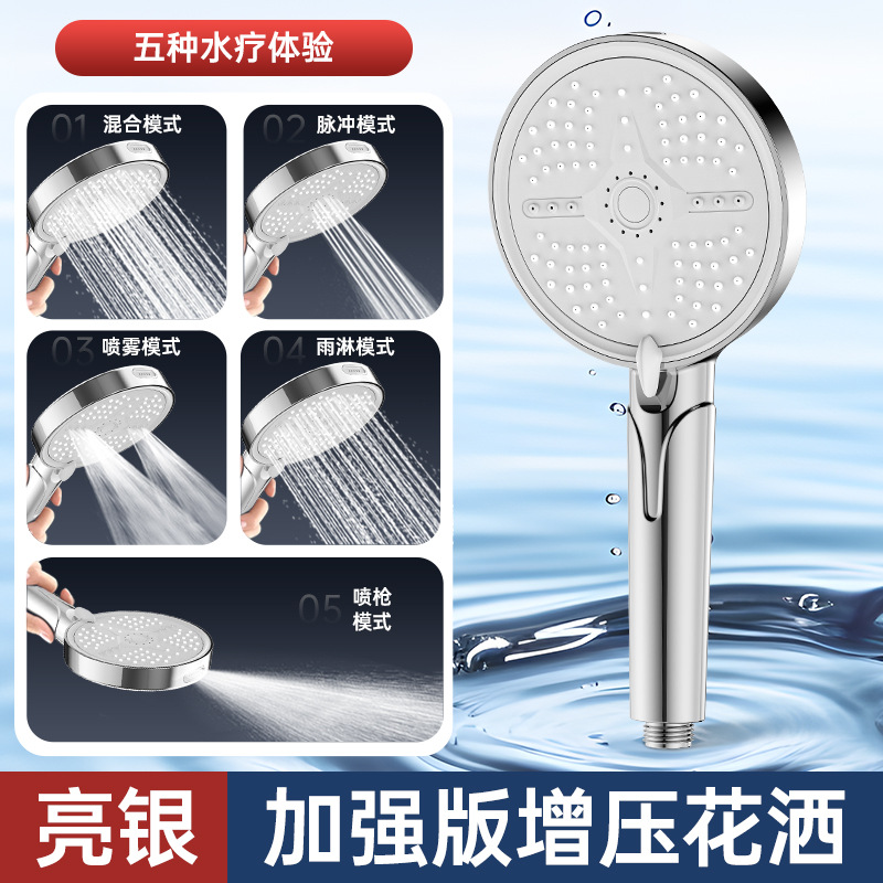 • 실버 미러 스타 대형 페이스 슈퍼차지 5단 샤워 헤드