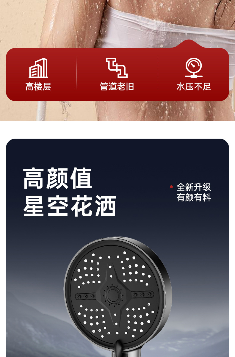 • Black Yao Xingchen 슈퍼차지 5단 샤워 + 1.5m 샤워 파이프