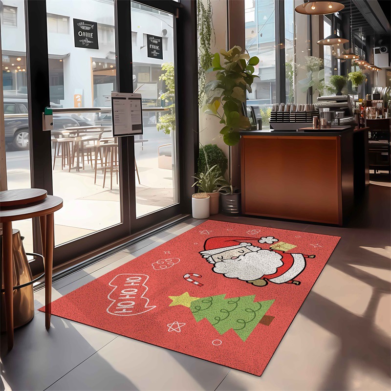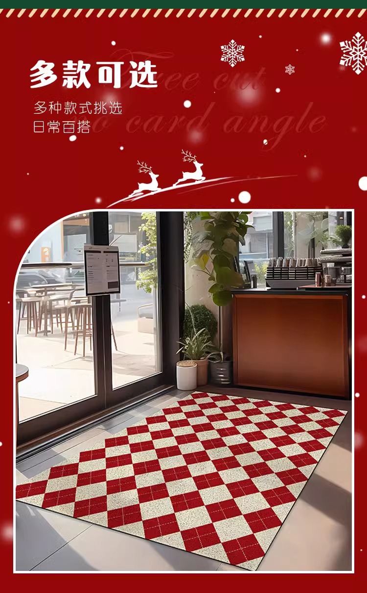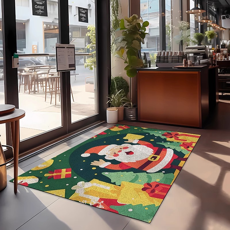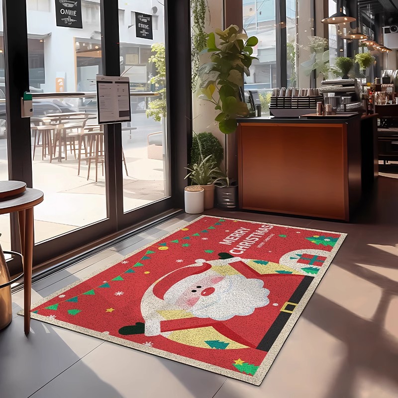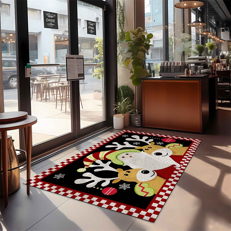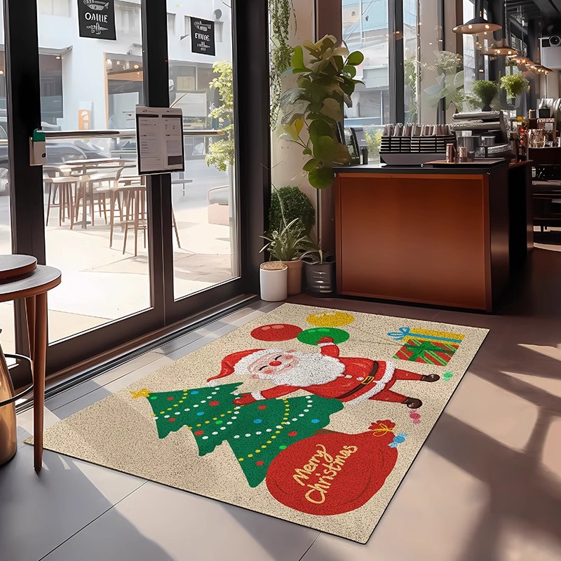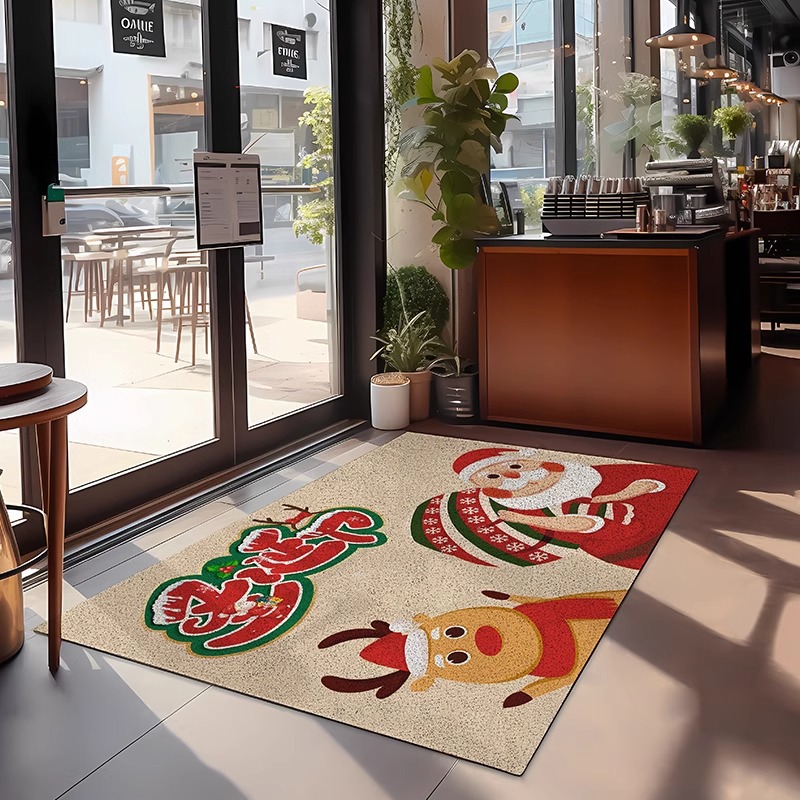 북유럽 스타일 실크 원형 바닥 매트 입구 문 홈 카펫 크리스마스 미끄럼 방지 토양 긁기 진흙 문 발 매트 도매스토어 가기