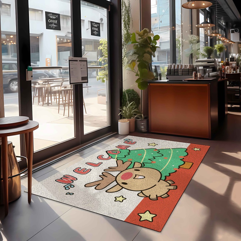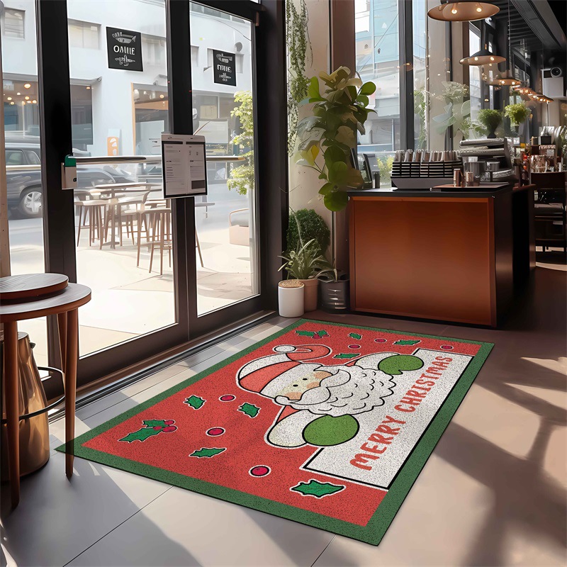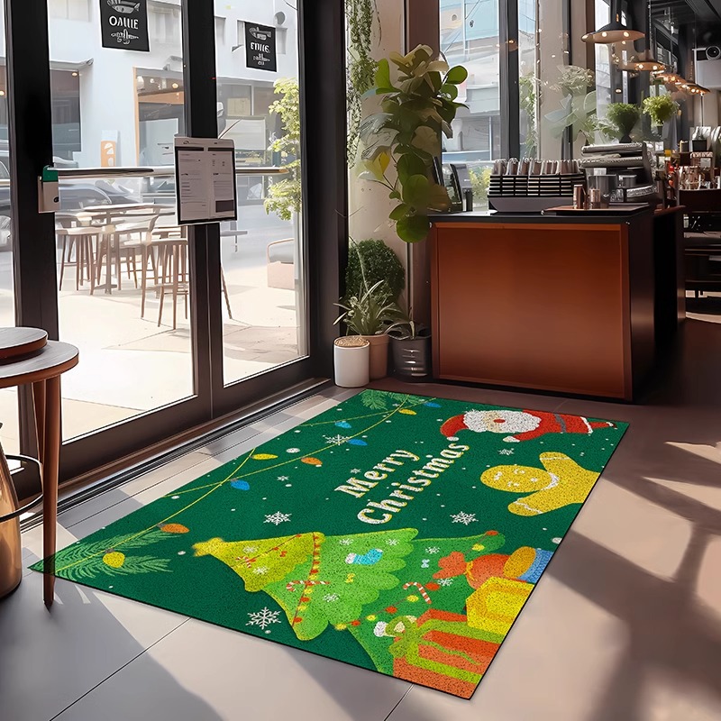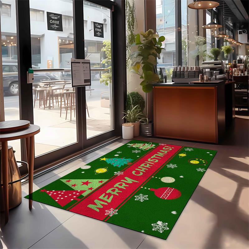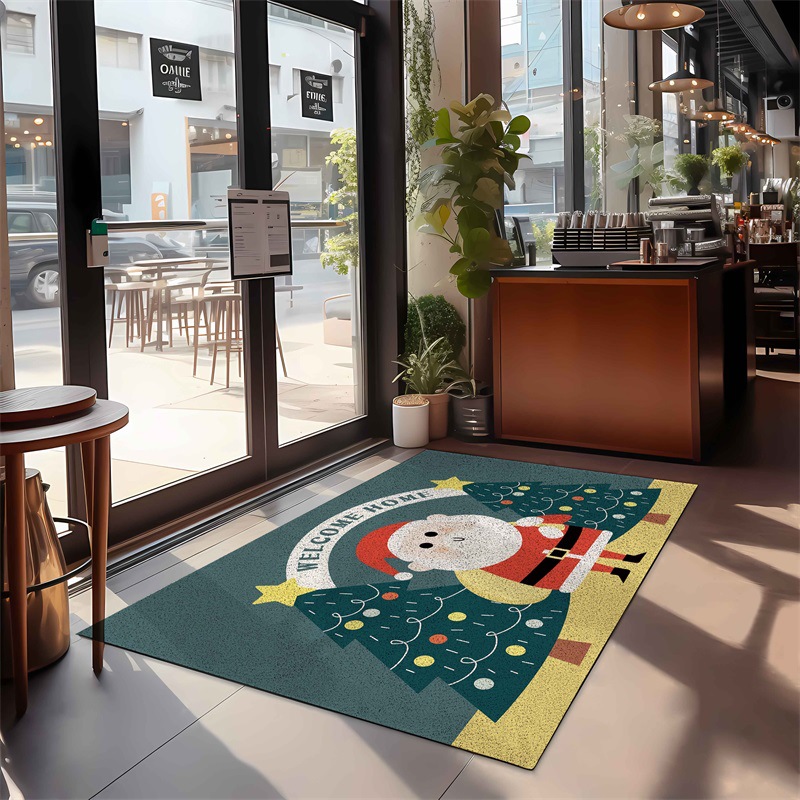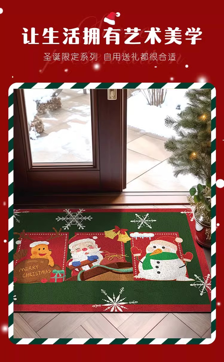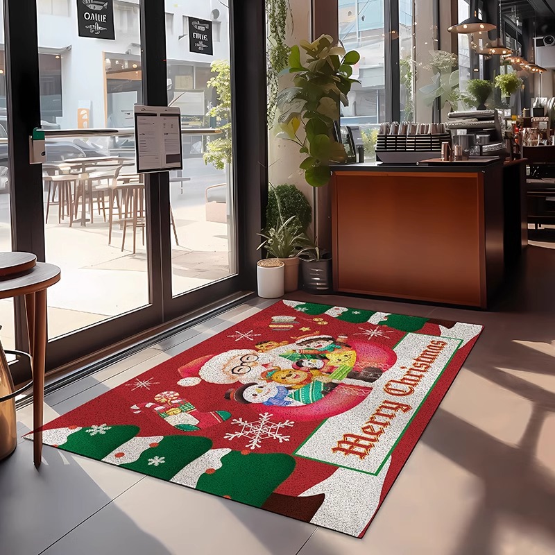북유럽 스타일 실크 원형 바닥 매트 입구 문 홈 카펫 크리스마스 미끄럼 방지 토양 긁기 진흙 문 발 매트 도매스토어 가기