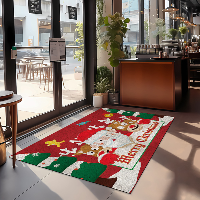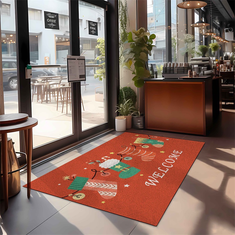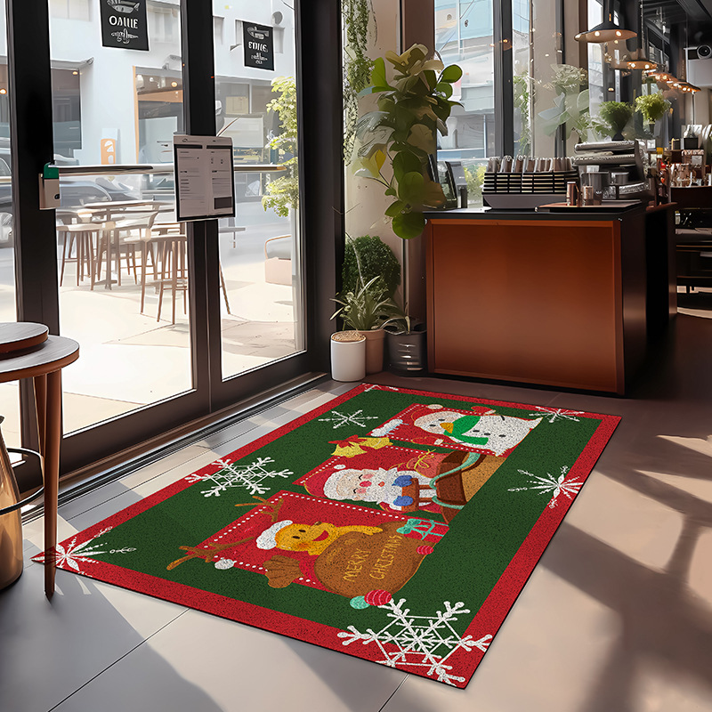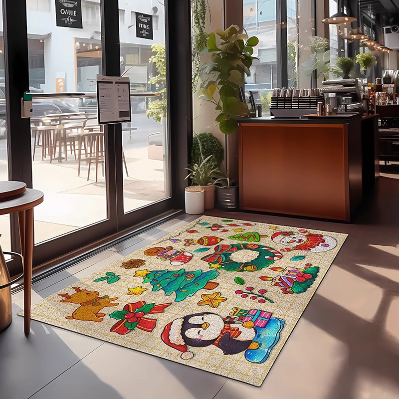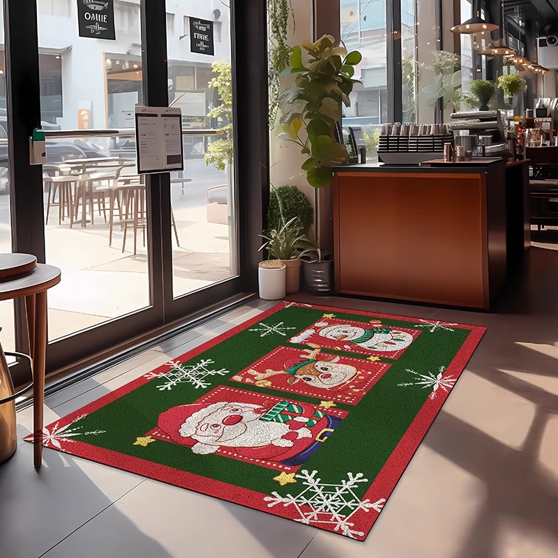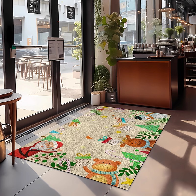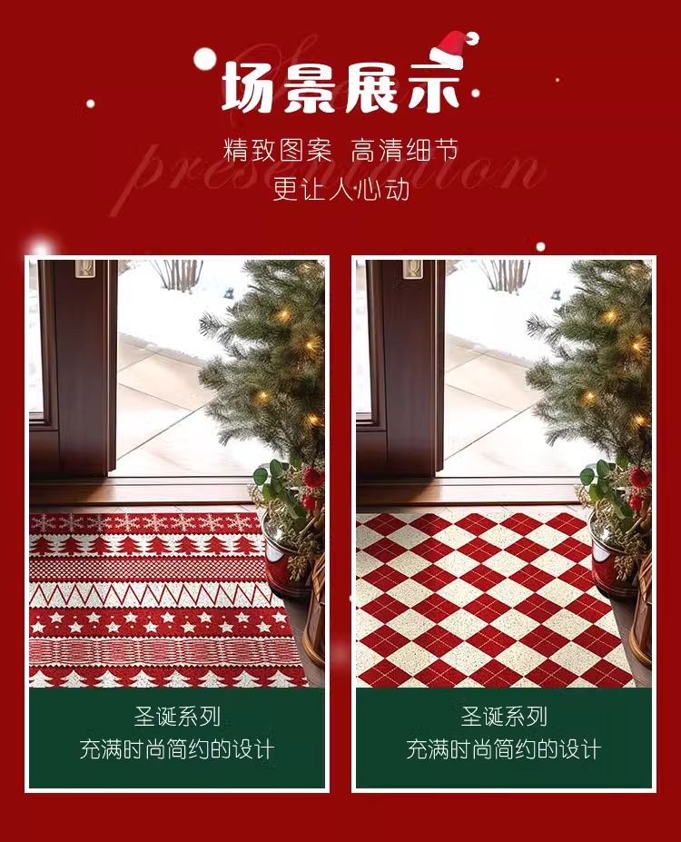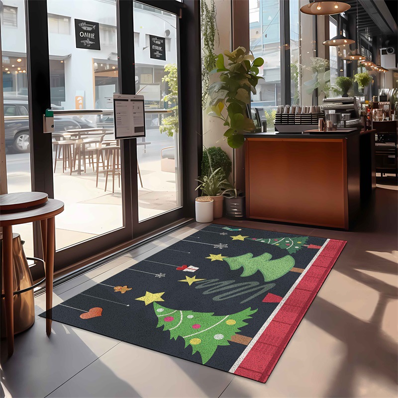 북유럽 스타일 실크 원형 바닥 매트 입구 문 홈 카펫 크리스마스 미끄럼 방지 토양 긁기 진흙 문 발 매트 도매스토어 가기